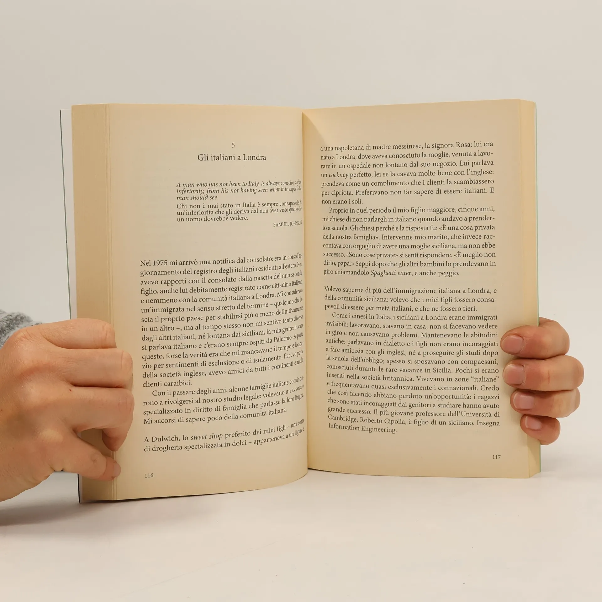 Simonetta Agnello arriva sola a Londra nel settembre 1963 – a tre ore da Palermo, è in un altro mondo. La città le appare subito come un luogo di riti e di magie: la coda nella fila degli aliens al controllo passaporti; l’autostrada sopraelevata diventa un tappeto volante. La paura di non capire e di non essere accettata forza impietosa il passaggio dall’adolescenza alla maturità.Diventa Mrs. Hornby. Ha due figli. Tutta una vita come inglese e come siciliana. Ora Simonetta Agnello Hornby può riannodare i fili della memoria e accompagnare il lettore nei piccoli musei poco noti, a passeggio nei parchi, nella amatissima casa di Dulwich, nel fascinoso appartamento di Westminster, nella City e a Brixton, dove lei ha esercitato la professione di avvocato; al contempo, cattura l’anima della sua Londra, profondamente tollerante e democratica, che offre a gente di tutte le etnie la possibilità di lavorare.Gioca in tal senso un ruolo formidabile la scoperta di Samuel Johnson, un intellettuale che vi arrivò a piedi, ventisettenne, alla ricerca di lavoro; compilò il primo dizionario inglese ed è considerato il padre dell’illuminismo inglese. Johnson appare negli studi che Tomasi di Lampedusa – ancora una volta il nodo fra Londra e Palermo – dedicò alla letteratura inglese, con un suo celebre adagio che qui suona motto esistenziale, filtro di nuova esperienza: «Quando un uomo è stanco di Londra, è stanco anche di vivere».