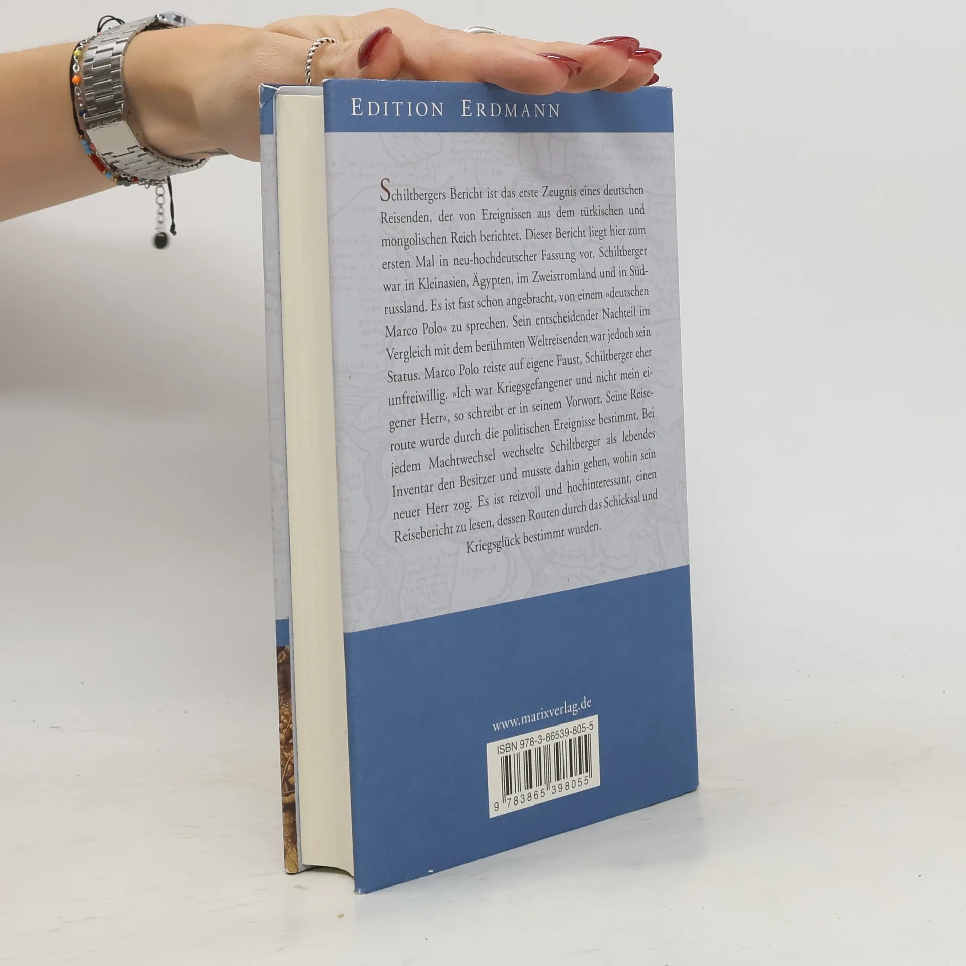Der Leser erfährt von den politischen Umwälzungen im Vorderen und Hinteren Orient während dieser Zeit. Schiltberger berichtet nicht nur von Kriegsfahrten und Eroberungen, sondern beobachtet auch Land, Leute, Sitten und Gebräuche genau und merkt sich Sagen und Erzählungen, die er an Lagerfeuern hörte. Besonders am Herzen liegt ihm als Teilnehmer eines Kreuzzugs die Religion, wodurch ein lebendiges Bild der Vielfalt des religiösen Lebens in der „Heidenschaft“ entsteht. Sein Bericht ist das erste Zeugnis eines deutschen Reisenden über das türkische und mongolische Reich, nun erstmals in neuhochdeutscher Fassung. Schiltberger reiste durch Kleinasien, Ägypten, das Zweistromland und Südrussland. Man könnte ihn als „deutschen Marco Polo“ bezeichnen, doch sein Status war entscheidend anders. Während Marco Polo auf eigene Faust reiste, war Schiltberger Kriegsgefangener und nicht sein eigener Herr. Seine Reiseroute wurde durch politische Ereignisse bestimmt, und bei jedem Machtwechsel wechselte er als lebendes Inventar den Besitzer. Es ist faszinierend, einen Reisebericht zu lesen, dessen Routen durch Schicksal und Kriegsglück geprägt sind, und der Leser bleibt an den Brennpunkten der Geschichte Vorderasiens. Die Perspektive des einfachen Soldaten, die der Erzähler als Sklave einnimmt, verleiht dem Bericht eine besondere Note und macht ihn in seiner fast naiven Erzählweise liebenswert.