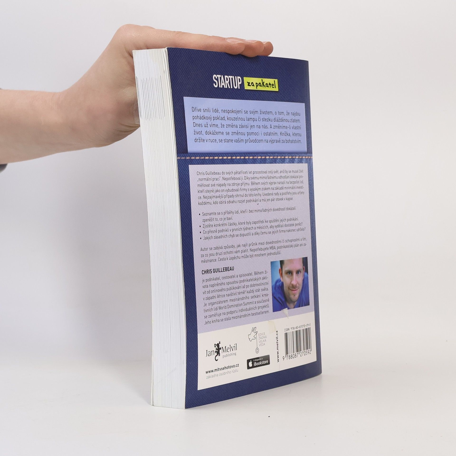 Doba je nelehká a vaše finanční situace se "sama od sebe" nezlepší. Na každém z nás leží tíha rozhodnutí, co se svým životem a co se svou obživou. Chris Guillebeau ve své knize s (velmi pracovně přeloženým) názvem "Startup za pakatel – Objevte způsob, jak pracovat na sebe a živit se tím, co vás baví" přináší čerstvý pohled na to, jak se dnes postavit na vlastní nohy. Na knize je úžasné, že se týká prostě každého z nás. Autor ukazuje, že s trochou vůle a entuziazmu je téměř každý dospělý člověk schopen tvořit svůj vlastní malý byznys, jehož smysl pak je nejen v příjmu, ale i v radosti, kterou přináší. Chris vyhledal a vyslechl 1500 podnikatelů od ročního příjmu 1 milion korun nahoru, kteří však začínali s pár tisícovkami v kapse. Z nich vybral padesátku nejzajímavější příběhů a hledal v nich společné rysy. Zjistil fascinující skutečnosti o tom, jak s poměrně malými prostředky (v mnoha případech konkrétně s jednou stodolarovkou) lidé nakonec proměnili svou vášeň, potřebu či koníček v úspěšný, smysluplný a zábavný byznys. Kniha je doplněna o české příběhy úspěšných firem napsané Filipem Dřímalkou.