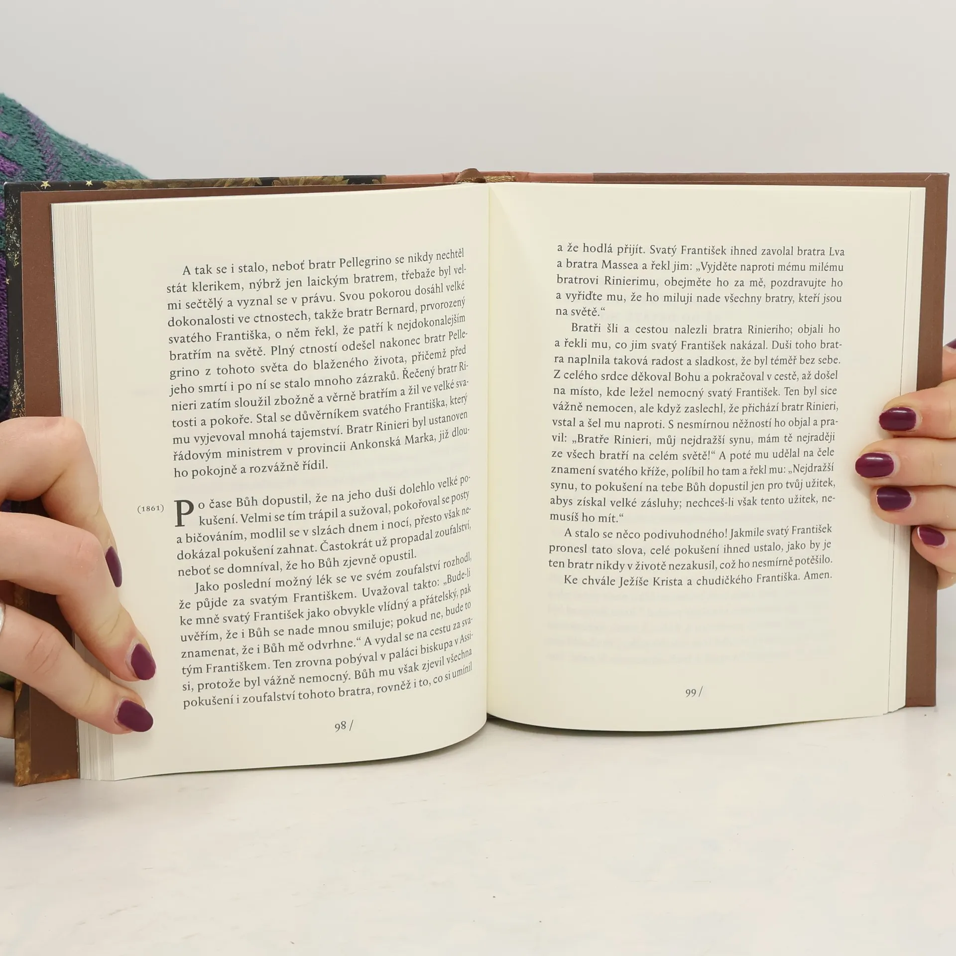 Z příběhů svatého Františka a jeho prvních druhů dýchá ryzí evangelium, a tak se dnes právem řadí k perlám křesťanské literatury. Poslední české vydání bylo již dávno rozebráno a navíc vykazovalo mnohé jazykové nesrovnalosti, proto jsme se rozhodli přistoupit nejen k novému vydání, ale i k novému překladu. Chceme tím zaplnit vzniklou mezeru a vyjít vstříc jak široké františkánské rodině, tak i všem duchovně hledajícím různých spiritualit. Přidanou hodnotou jsou zajisté i krásné ilustrace současného italského výtvarníka Piera Casentiniho z jeho cyklu Píseň bratra slunce. Nový překlad vychází z kritického vydání italského textu z konce 14. století, který evidentně čerpal z latinského spisu bratra Hugolina Actus Beati Francisci — více o vzniku a duchovním významu díla se lze dočíst v závěru knihy, ve fundovaném pojednání otce Regaláta Petra Beneše OFM.