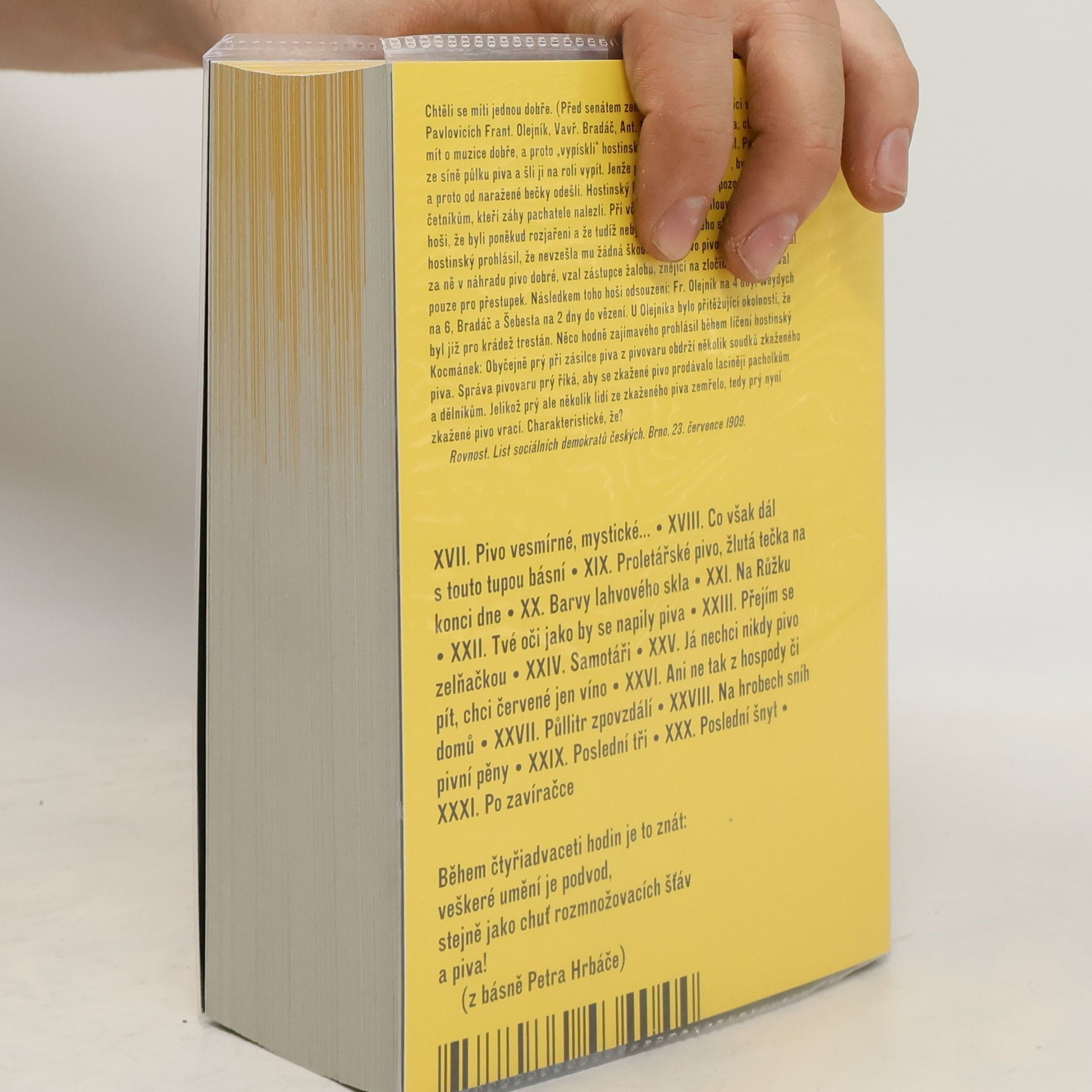 Antologie básní o pivu a pivní poezie od roku 1880 po současnost. Knížka představuje národní bardy i autory regionální a zdánlivě bezvýznamné. Čtenář se v knize setká například s Egonem Bondym, Ivan Divišem, Jaroslavem Durychem, Jaroslavem Erikem Fričem, Břetislavem E. Frýdlantským, Zbyňkem Hejdou, Homérem (Pavlem Ambrožem), Františkem Hrubínem, Petrem Hruškou, Lvem Karvinským, Ludvíkem Kunderou, Janem Nerudou, Naděždou Plíškovou, Pavlem Rajchmanem, Zdeňkem Rotreklem, Jaroslavem Seifertem, Andrejem Stankovičem, Ivanem Wernischem, Jaroslavem Žilou a mnoha dalšími autory.
