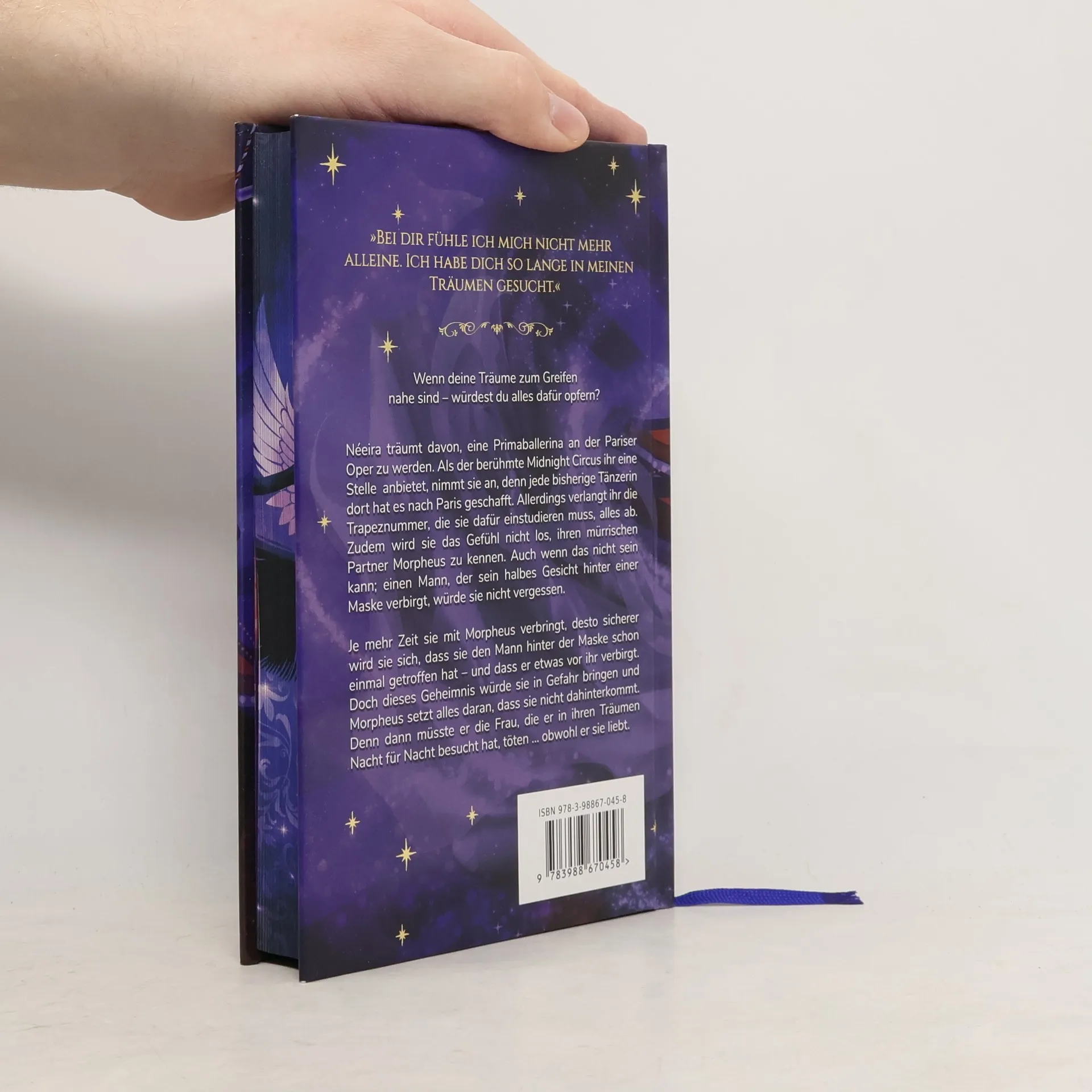 Wenn deine Träume zum Greifen nahe sind – würdest du alles dafür opfern? Néeira träumt davon, eine Primaballerina an der Pariser Oper zu werden. Als der berühmte Midnight Circus ihr eine Stelle anbietet, nimmt sie an, denn jede bisherige Tänzerin dort hat es nach Paris geschafft. Allerdings verlangt ihr die Trapeznummer, die sie dafür einstudieren muss, alles ab. Zudem wird sie das Gefühl nicht los, ihren mürrischen Partner Morpheus zu kennen. Auch wenn das nicht sein kann; einen Mann, der sein halbes Gesicht hinter einer Maske verbirgt, würde sie nicht vergessen. Je mehr Zeit sie mit Morpheus verbringt, desto sicherer wird sie sich, dass sie den Mann hinter der Maske schon einmal getroffen hat – und dass er etwas vor ihr verbirgt. Doch dieses Geheimnis würde sie in Gefahr bringen und Morpheus setzt alles daran, dass sie nicht dahinterkommt. Denn dann müsste er die Frau, die er in ihren Träumen Nacht für Nacht besucht hat, töten … obwohl er sie liebt.