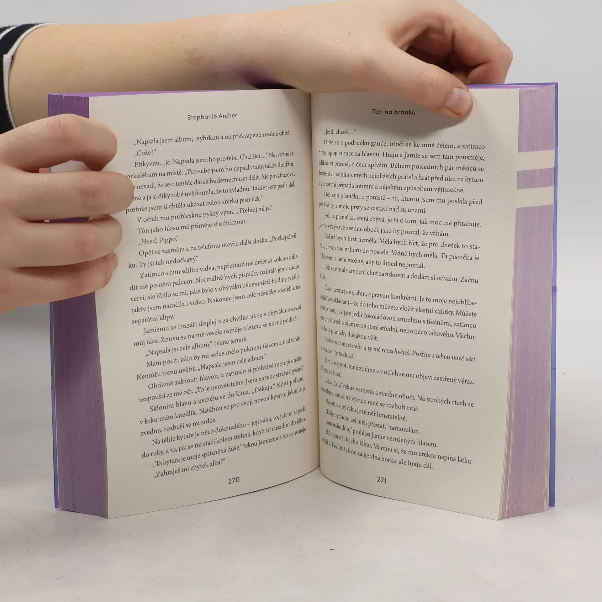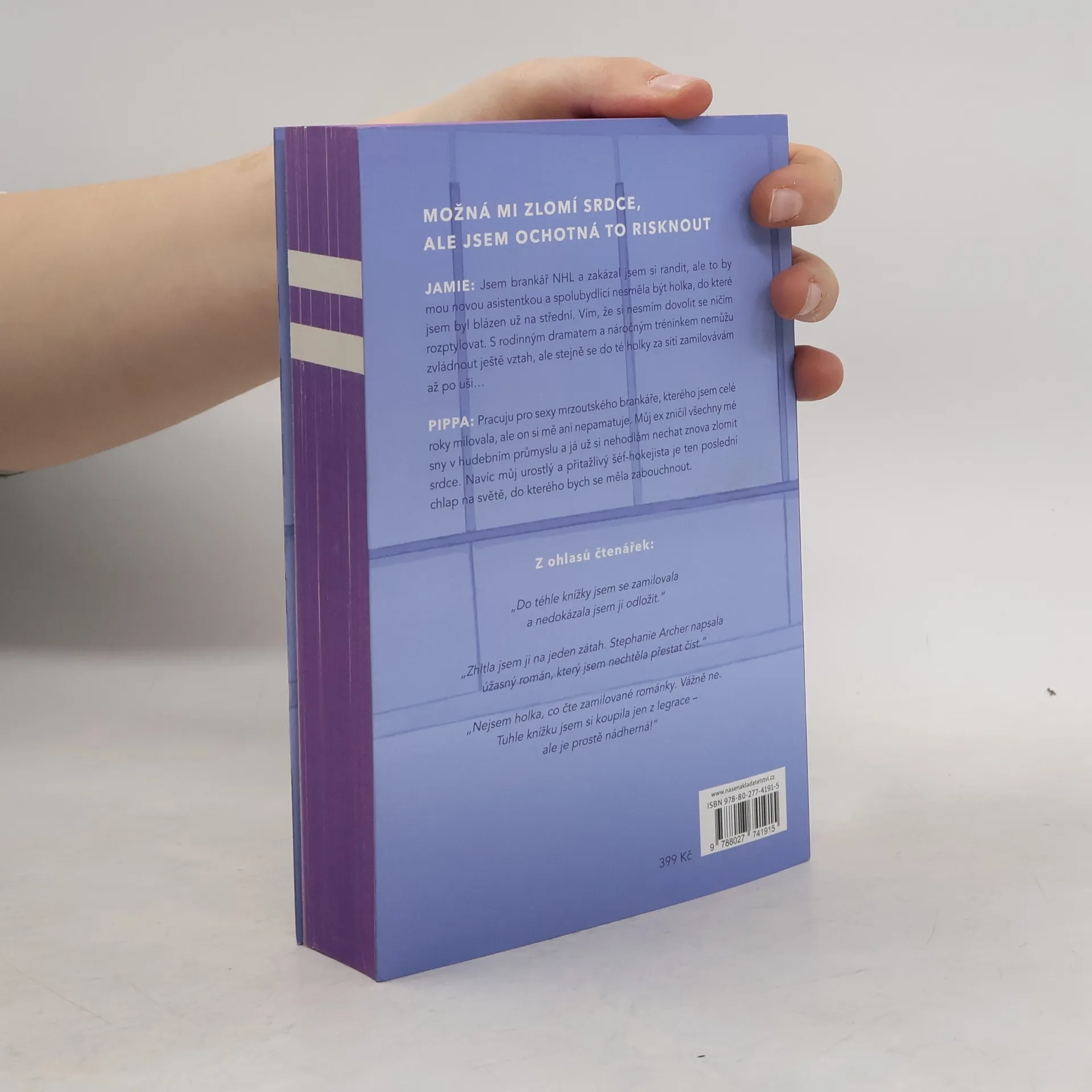 On je sexy nevrlý brankář, do kterého jsem byla zamilovaná už na střední... a teď jsem se stala jeho asistentkou. Bývalý přítel mi zničil sny o kariéře v hudebním průmyslu a já už nikdy nechci, aby mi někdo zlomil srdce. Pracovat jako asistentka hráče v NHL měla být hračka, ale na Jamiem Streicherovi není snadného vůbec nic. Je to hrozně přitažlivý a nabručený idiot, který mě nemůže vystát. Navíc má fakt obrovské ego. Na druhou stranu to znamená, že udržet věci na profesionální úrovni nebude problém. Ani když mě poprosí, abych se k němu nastěhovala. Pod vší tou nevrlostí je Jamie překvapivě milý a snaží se všechny kolem sebe chránit. Když se dozví, že to mému bývalému vůbec nešlo v posteli, převládne v něm soutěživá povaha a začne mě ve všem podporovat a rozmazlovat. A tvůrčí jiskra, kterou jsem kdysi cítila při psaní textů? Je zpátky a já už zase skládám písničky. Začnu na zápasech nosit jeho dres, chodit s týmem na bujaré večírky a znovu získám odvahu zpívat na pódiu. Zanedlouho zjistím, že jsem se do něj zamilovala až po uši. Možná mi nakonec zlomí srdce, ale bude to stát za to.