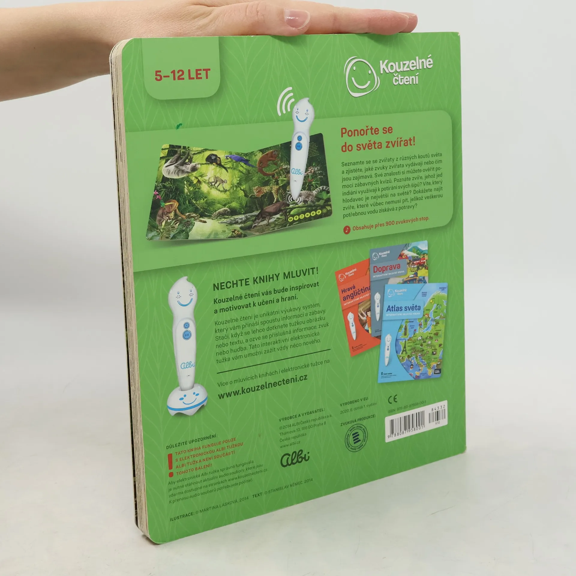 Ponořte se do světa zvířat! Seznamte se se zvířaty ze všech koutů světa a zjistěte, jaké zvuky vydávají, čím se živí nebo čím jsou jedinečná. Kniha vás tématicky provede osmi různými prostředími z naší planety, jako je les, savana, poušť, moře a další. Na každé straně se dozvíte, jaká zvířata v daném prostředí žijí, jak se jmenují, jaké zvuky vydávají a čím jsou zajímavá. Své znalosti si pak můžete ověřit pomocí zábavných kvízů, které jsou vždy rozděleny do tří kategorií: najdi zvíře podle názvu, najdi zvíře podle zvuku, najdi zvíře podle zajímavosti. Kniha je namluvena známým českým hercem Otakarem Brouskem ml. Kniha obsahuje přes 900 zvuků a textů. Kniha vznikla ve spolupráci s Českým rozhlasem.