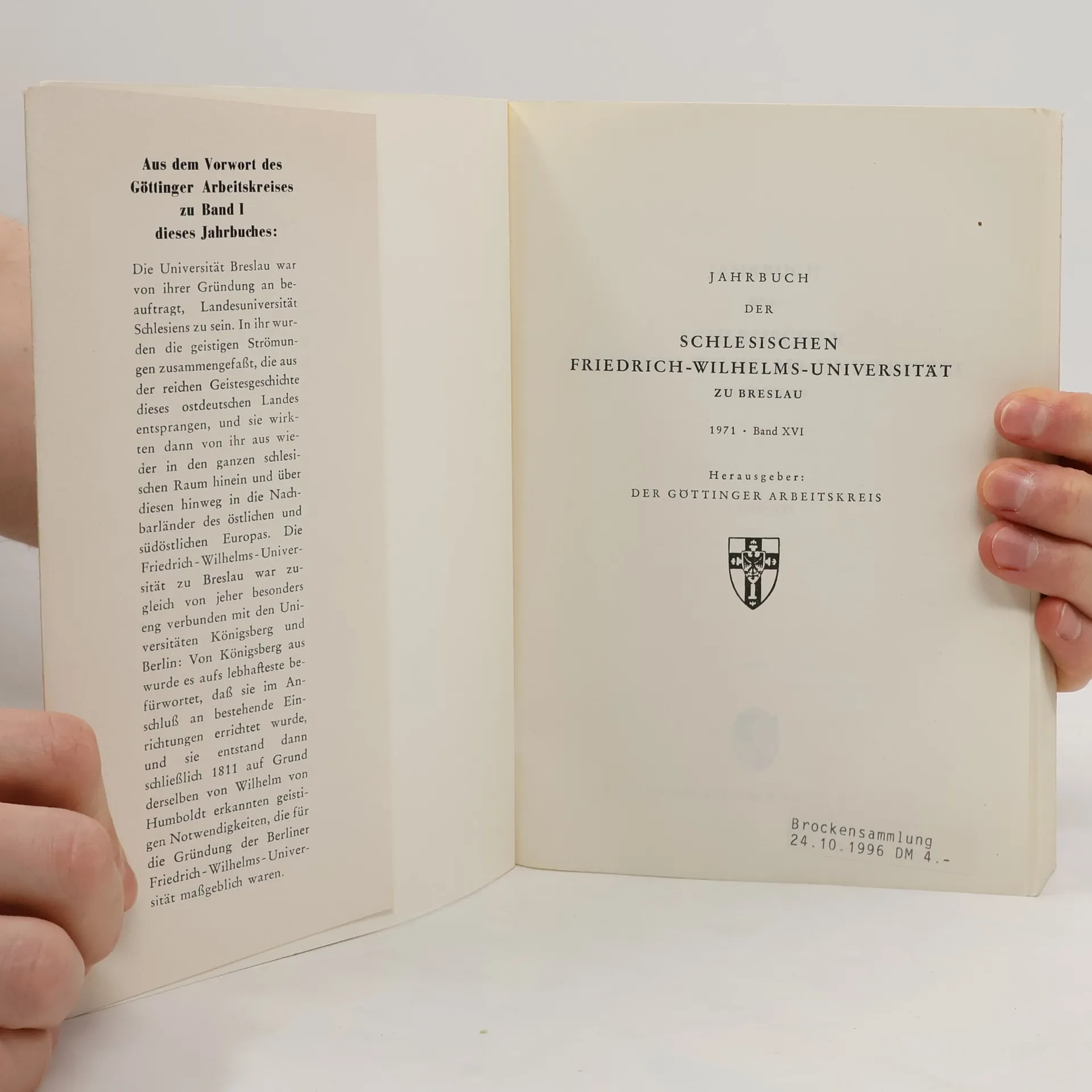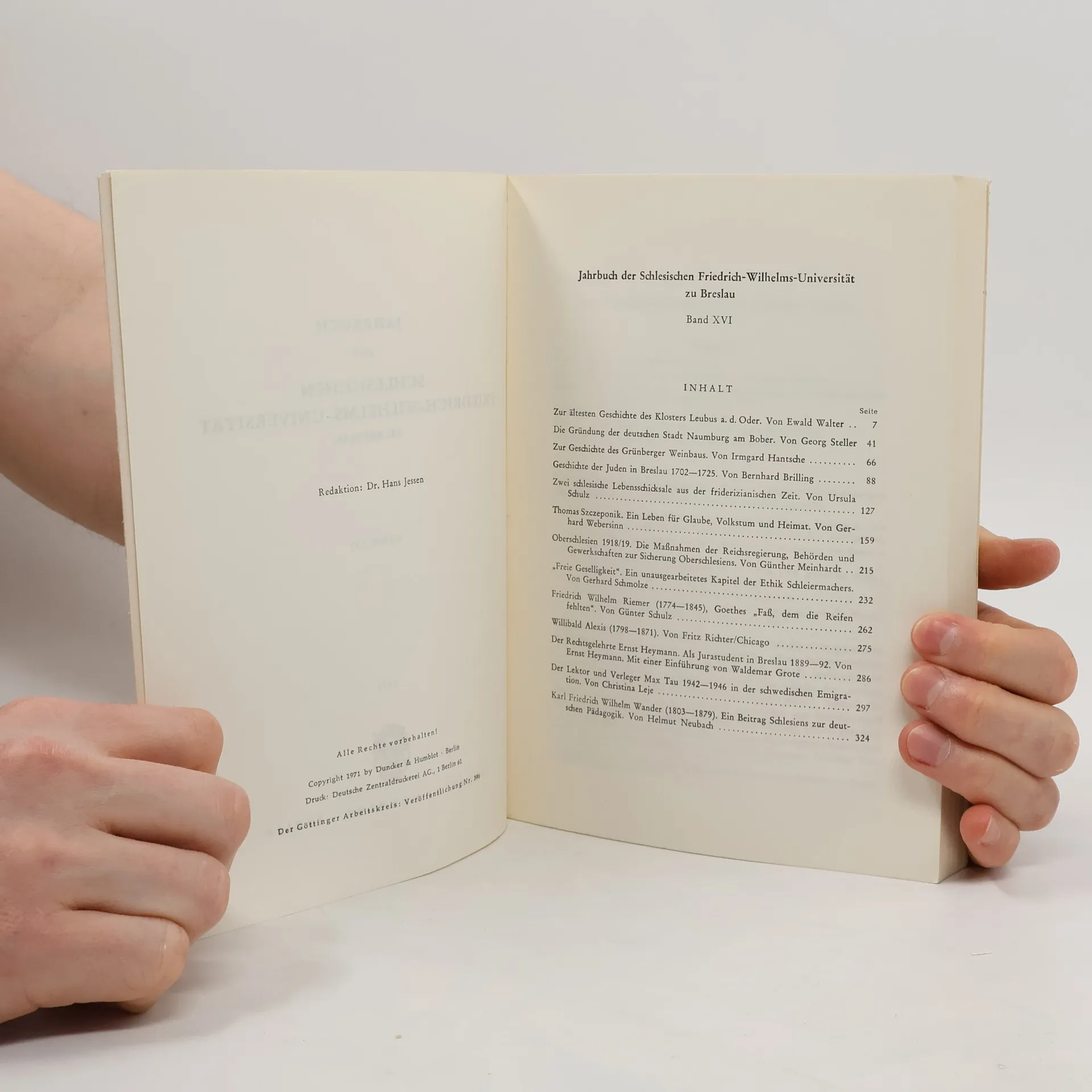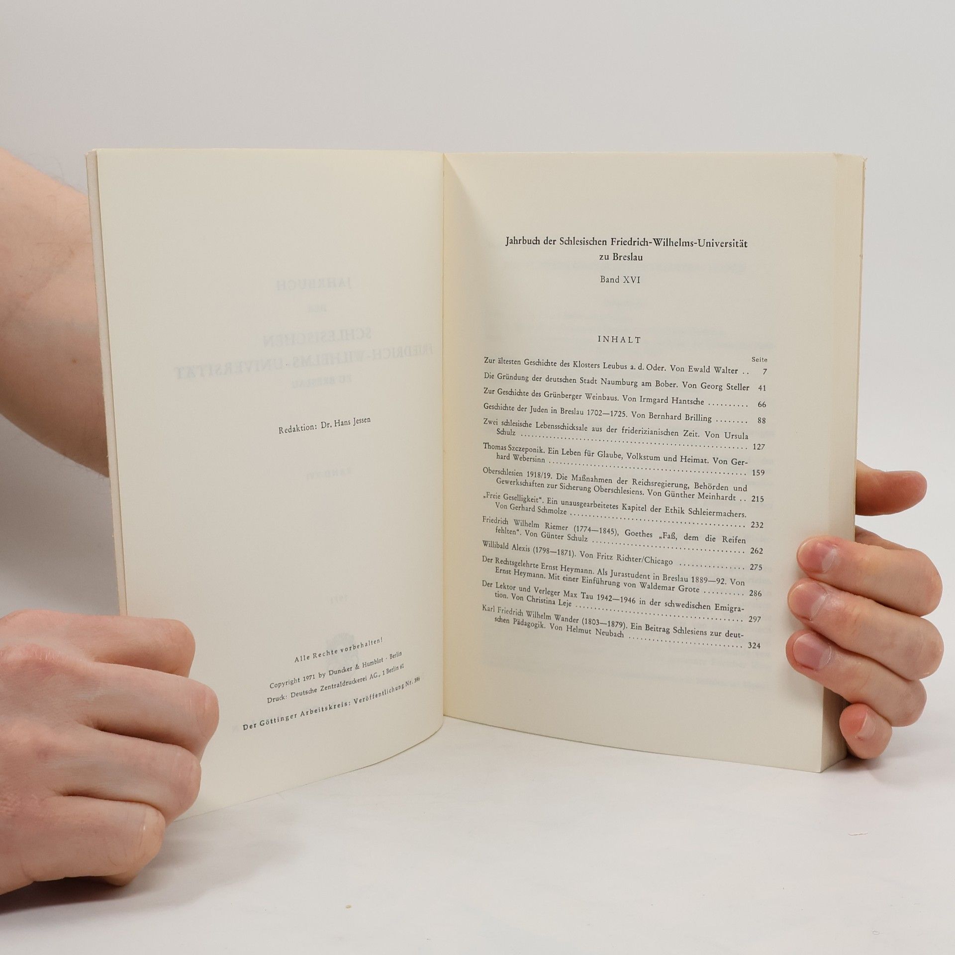 Jahrbuch der Schlesischen Friedich-Wilhelms-Universität zu Breslau XVI/1971, Auteurscollectief