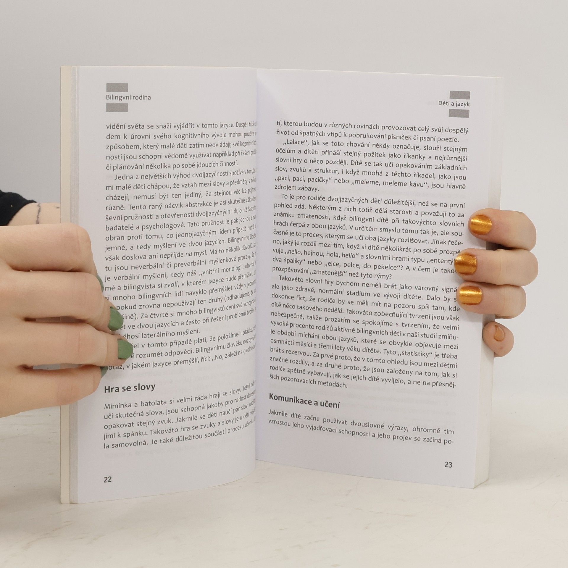 Příručka poskytuje informace všem rodičům, kteří vychovávají své děti v bilingvním prostředí. Pomůže jim uchopit všechny faktory, které bilingvní výchovu ovlivňují, a nabídne jim rozličná řešení problémů, s nimiž se bilingvní rodina potýká. Informace doplňuje množství případových studií. Závěrečná část knihy obsahuje abecedně řazený rejstřík hesel.