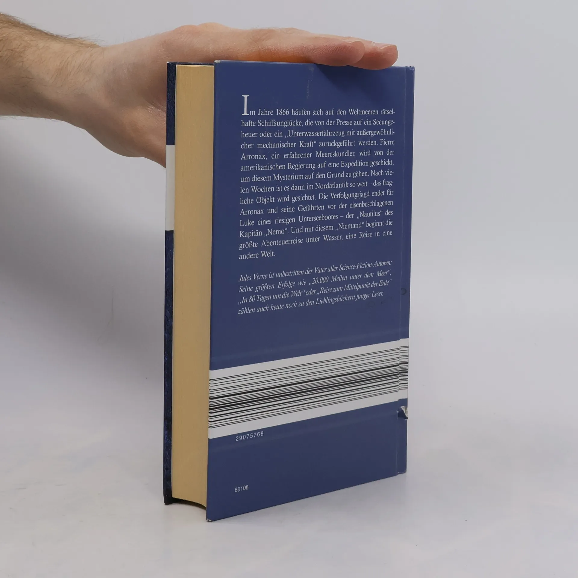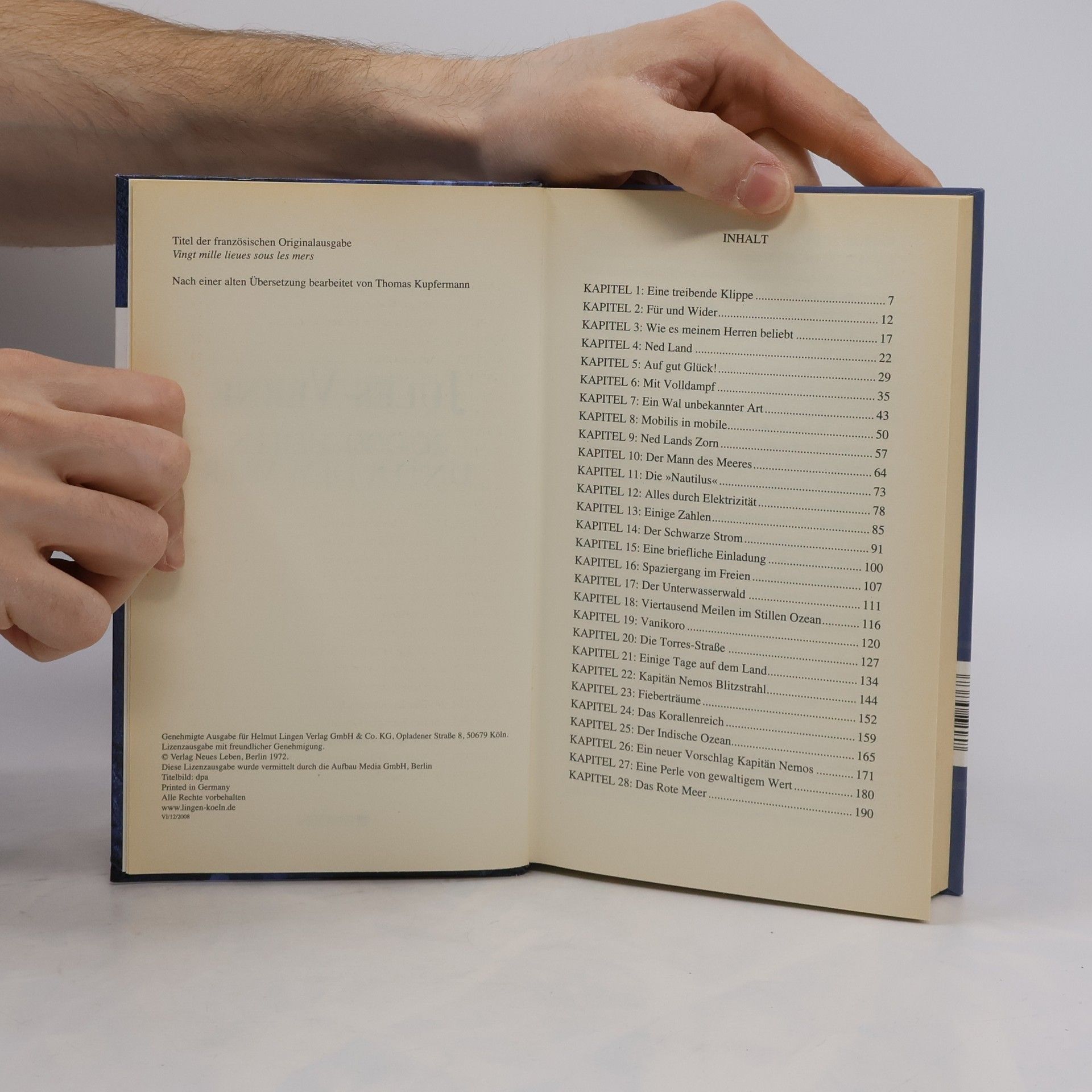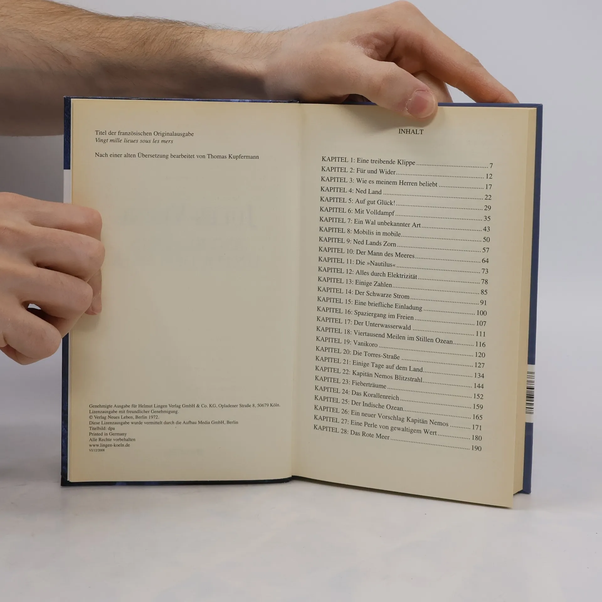Zu den immer wieder zitierten Meisterwerken von Jules Verne gehört der große Roman über das Riesen-U-Boot Nautilus und die Geschichte von Kapitän Nemo, dem grausamen und geheimnisvollen Rächer, der darin mit einer kleinen Schar Getreuer die Weltmeere befährt. Jules Verne hatte gerade auf einem Kabelleger den Atlantik überquert, als er dieses Buch schrieb. Beispielhaft mischt er darin eine spannende Romanhandlung, wissenswerte Informationen über Ozeanographie, Meeresfauna und -flora mit phantastischen Abenteuern wie dem Kampf mit Riesenkraken, dem Unterqueren der Meerenge von Sues oder der Entdeckung des untergegangenen Atlantis. Hinzu kommt die geniale technische Vision hinsichtlich des Funktionierens eines Unterwasserschiffes, das zudem ungeheuer luxuriös ausgestattet ist. Und schließlich die Schicksalsgeschichte von Kapitän Nemo selbst, eines Menschen rätselhafter Herkunft, eines gebildeten und kultivierten Wissenschaftlers und Ingenieurs, der gleichwohl am Schluß den Untergang eines Kriegsschiffes, das die Nautilus absichtlich gerammt hatte, mit Genuß von seinem Salonfenster aus beobachtet.