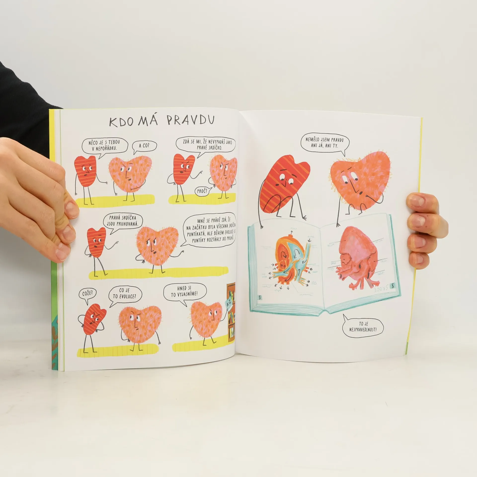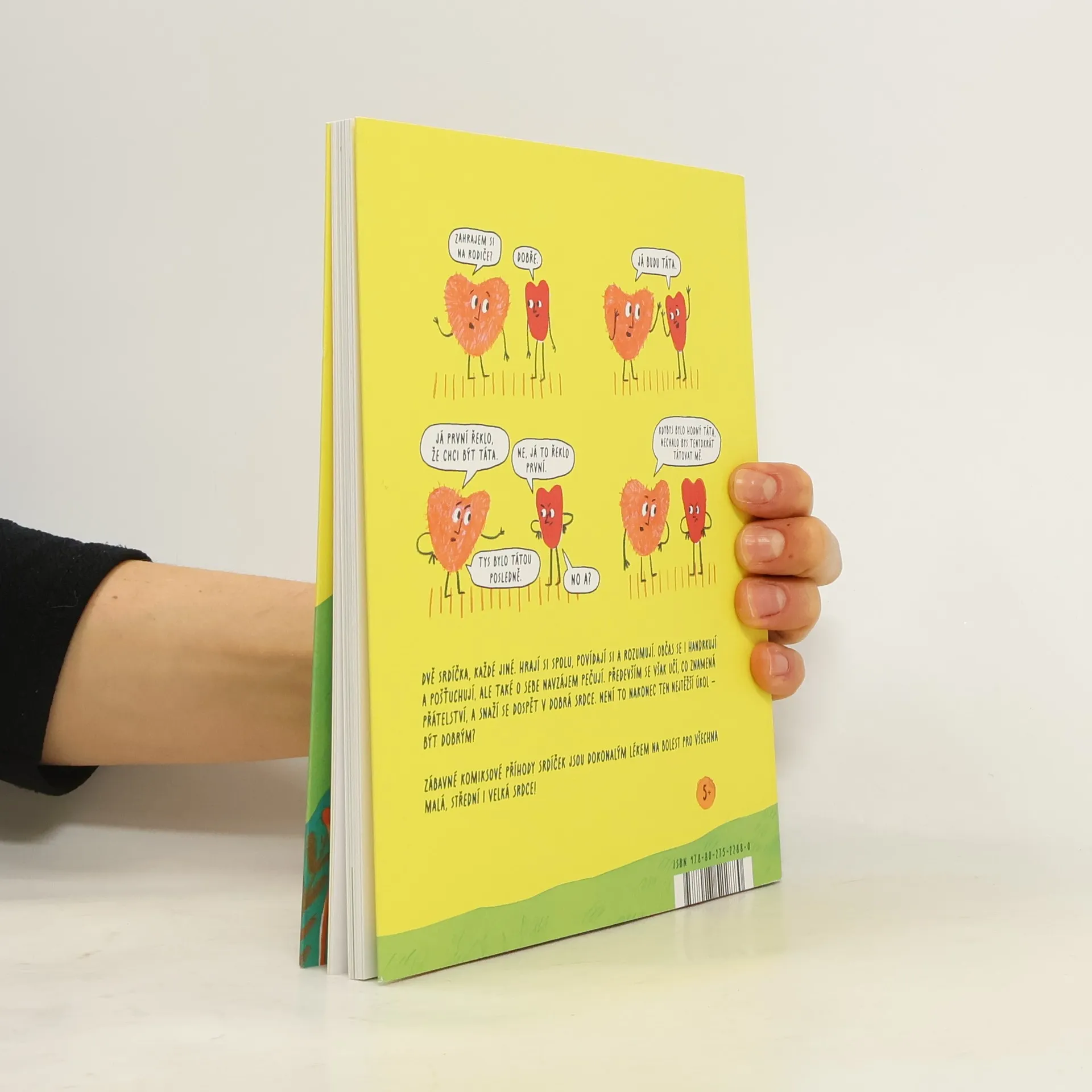 Splín, chmury a mrzutá nálada? To vše spolehlivě zaženou veselá komiksová srdíčka! Dvě srdíčka, každé jiné. Hrají si spolu, povídají si a rozumují. Občas se i handrkují a pošťuchují, ale také o sebe navzájem pečují. Především se však učí, co znamená přátelství, a snaží se dospět v dobrá srdce. Není to nakonec ten nejtěžší úkol — být dobrým? Zářivě barevná komiksová knížka lotyšské autorské dvojice Agnese Vanagové a Anny Vaivareové o dvou srdíčkách, která i přes odlišné povahy spojuje přátelství, obsahuje pětadvacet mikropříběhů a hodí se pro společné rodinné předčítání i první samostatné čtení. Ve vtipných, skvěle vypointovaných scénkách, jako vystřižených z našich životů, se zaručeně poznají nejen vaše děti, ale mnohdy i vy sami!