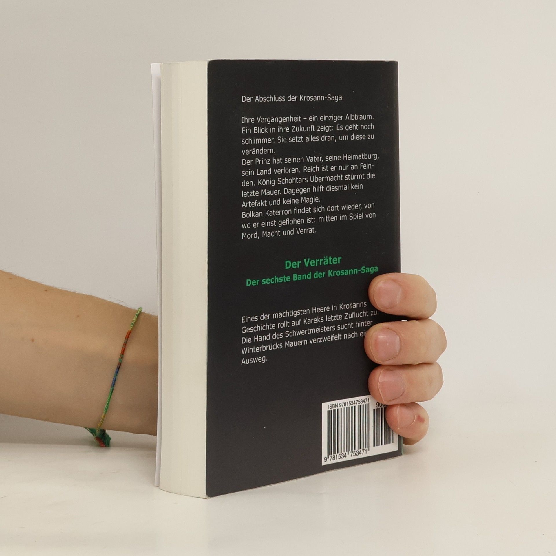 Der Abschluss der Krosann-SagaIhre Vergangenheit – ein einziger Albtraum. Ein Blick in ihre Zukunft Es geht noch schlimmer. Sie setzt alles dran, um diese zu verändern.Der Prinz hat seinen Vater, seine Heimatburg, sein Land verloren. Reich ist er nur an Feinden. König Schohtars Übermacht stürmt die letzte Mauer. Dagegen helfen diesmal kein Artefakt und keine Magie.Bolkan Katerron findet sich dort wieder, von wo er einst geflohen mitten im Spiel von Mord, Macht und Verrat.Der Verräter – Band III der zweiten Krosann-Saga TrilogieEines der mächtigsten Heere in Krosanns Geschichte rollt auf Kareks letzte Zuflucht zu. Die Hand des Schwertmeisters sucht hinter Winterbrücks Mauern verzweifelt nach einem Ausweg.Überblick aller Krosann-Bände Die Krosann-Saga (Erste Trilogie "Lehrjahre")Band 1: Die AuftragsmörderinBand 2: Der SchwertmeisterBand 3: Die SanduhrDie Krosann-Saga (Zweite Trilogie "Königsweg")Band 1: Die MyrnengöttinBand 2: Der SeelenspeerBand 3: Der VerräterDüEchtzeiT - Leid kennt keinen SonntagEchtzeiT - Wer die Wahrheit quältEchtzeit - Gier frisst jede Tugend (Herbst 2016)