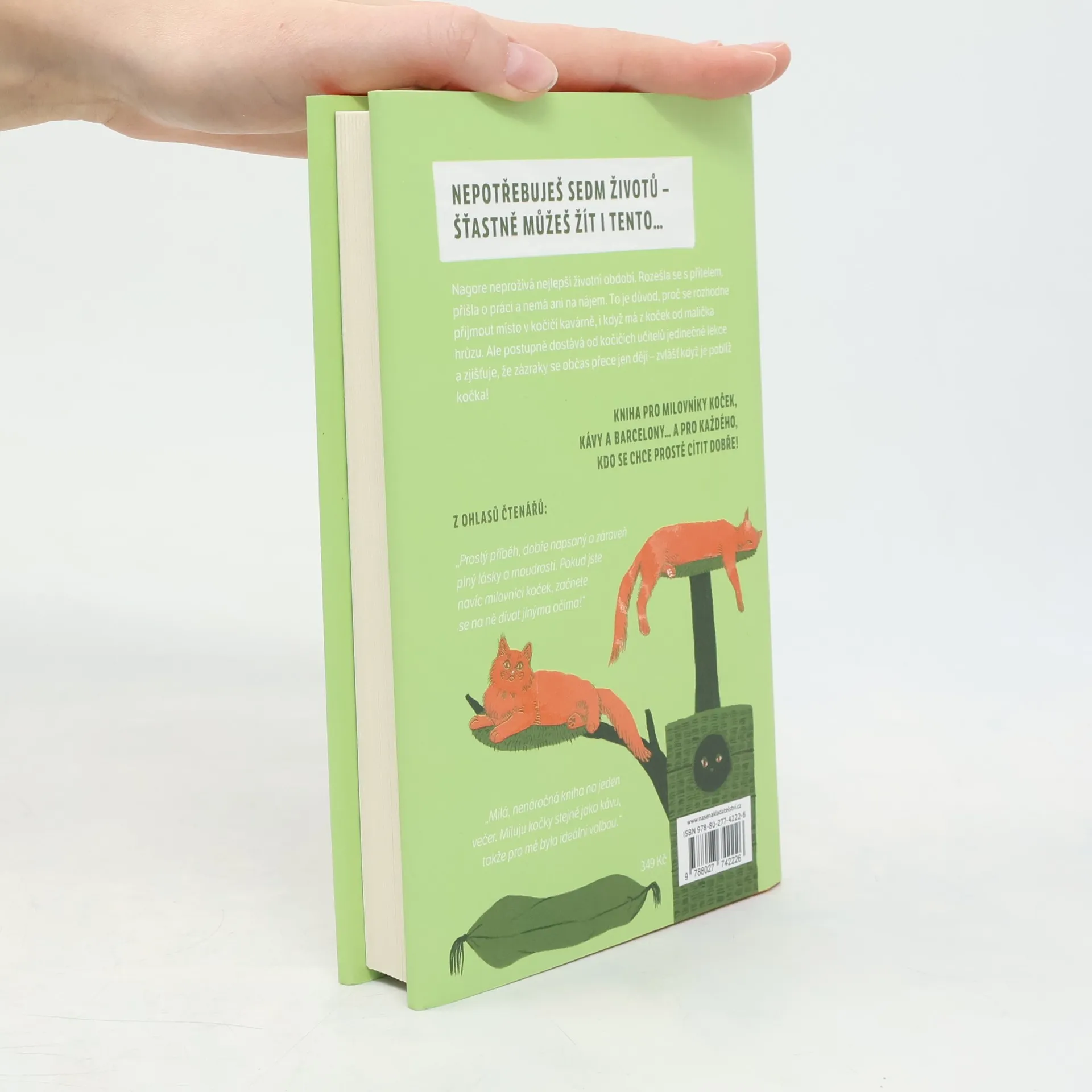 Od chvíle, kdy se rozešla s partnerem a přišla o zaměstnání, je život Nagore jedna velká pohroma. V peněžence jí zbývá posledních pár drobných, z nichž nepokryje ani nájem. V tu chvíli jí však dávná přítelkyně dohodí neobvyklou práci servírky v barcelonském Neko Café, sympatické malé kavárně, kde na své nové páníčky z řad zákazníků čeká sedm koček. Jelikož má Nagore z těchto tvorů už od dětství panickou hrůzu, po prvotním odmítnutí ji zoufalství donutí práci přijmout i proti své vůli. To, co zpočátku do její nejisté reality vtrhne jako uragán, se s přibývajícími dny ukazuje být život proměňující zkušeností. Každý ze sedmi mistrů Neko (japonsky „kočka“) jí poskytne klíč k umění žít, jako je klid, soustředění, flexibilita nebo ryzost srdce a další hodnoty, které začne uplatňovat v každodenním životě, dokud jí osud nepřipraví další nečekaný zvrat. Anna Sólyom napsala milý román, jenž čtenáře vede k poznání, že v životě je vždy možné najít své místo. Jeho děj se odehrává v jedné z kočičích kaváren, které jsou poslední dobou ve větších městech čím dál tím oblíbenější.