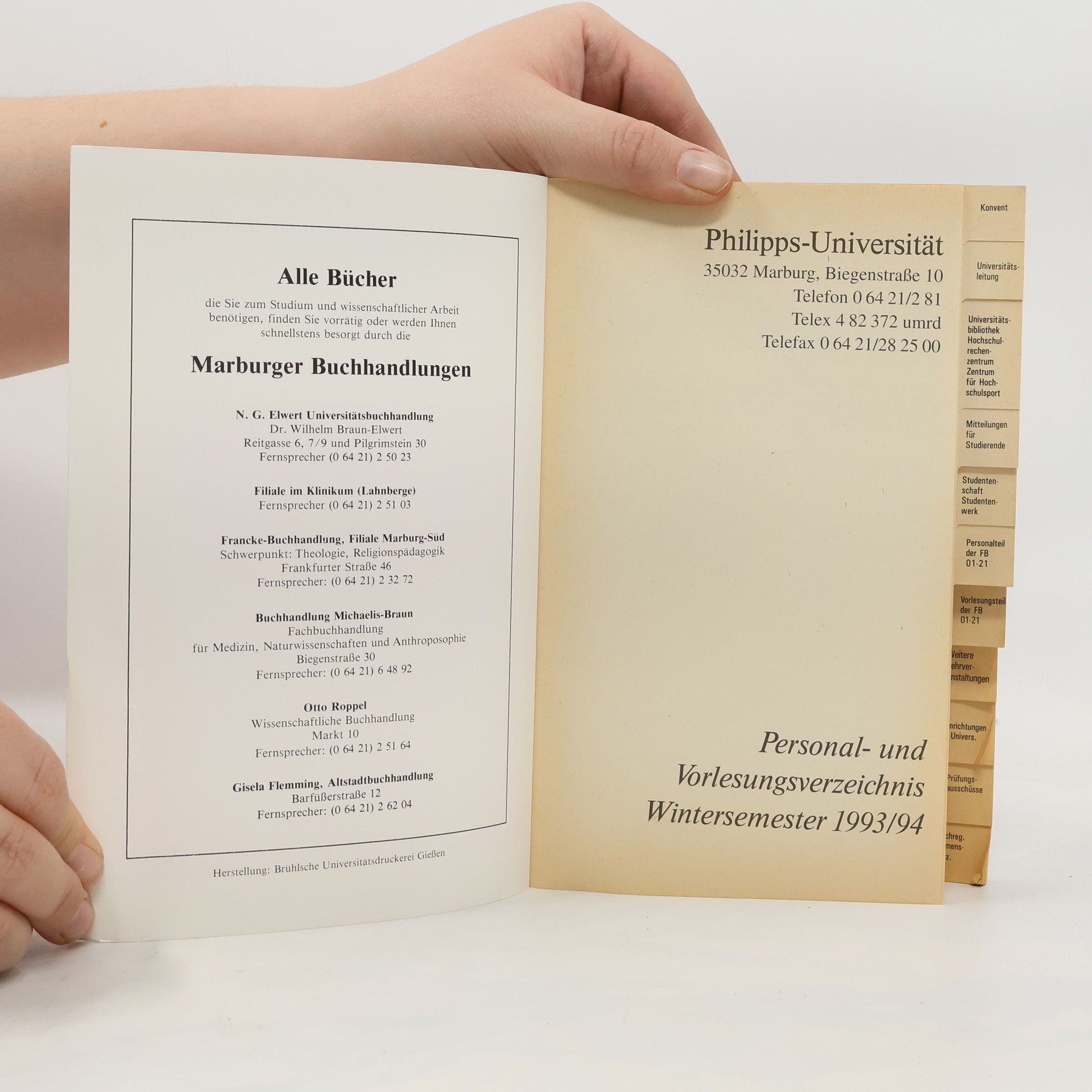 Philipps-Universität Marburg: Personal-und Vorlesungsverzeichnis Wintersemester 1993/94, Auteurscollectief