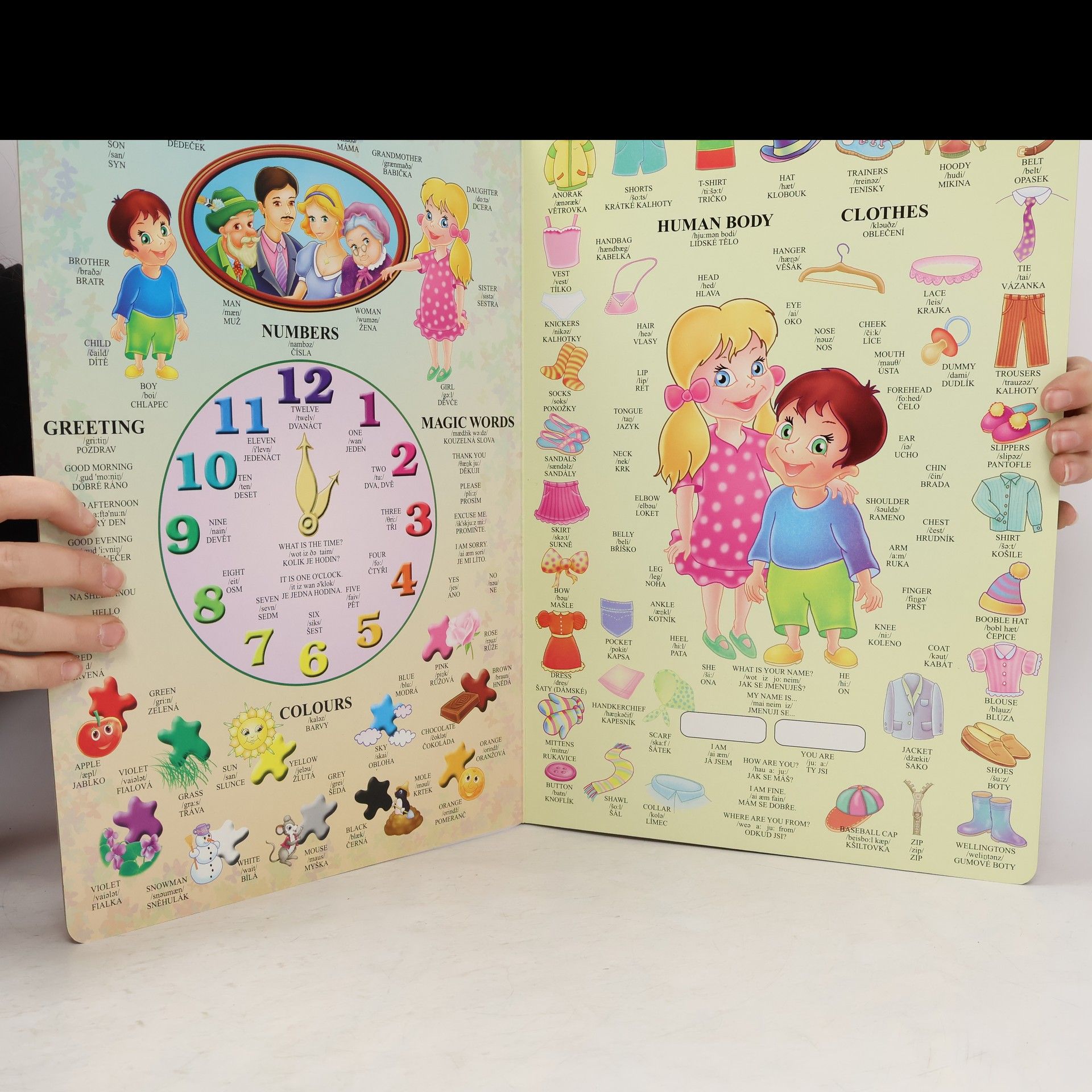 Výuka angličtiny pro nejmenší děti formou obrázků. Jsou zde uvedeny nejen české a anglické názvy, ale i přesná výslovnost. Na jednotlivých stránkách naleznete zvířata na dvoře, v lese, v přírodě, v ZOO. Vyobrazeno je i vaše oblečení, dům, jeho zařízení, věci které denně používáme, jídlo, hračky. Dále je to počasí, světové strany, hodiny, roční období, prázdninový pobyt v přírodě, cirkusu, ....