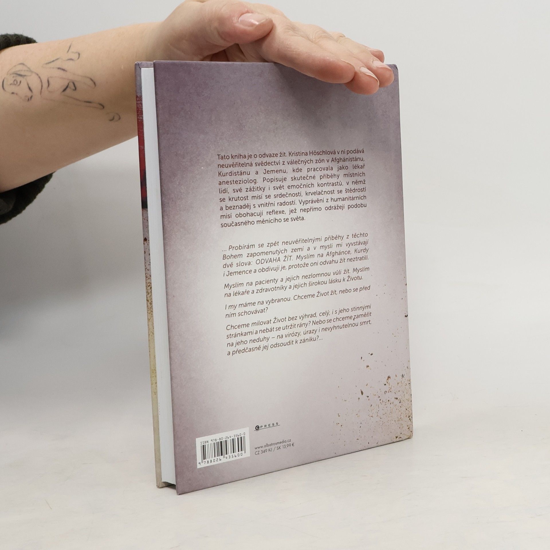 Osobní svědectví lékařky bez hranic. Tam, kde se beznaděj střetává s vnitřní radostí. Svědectví lékařky ve válečných zónách. Tato kniha je o odvaze žít. Kristina Höschlová v ní podává neuvěřitelná svědectví z válečných zón v Afghánistánu, Kurdistánu a Jemenu, kde pracovala jako lékař-anesteziolog. Popisuje skutečné příběhy místních lidí, své zážitky i svět emočních kontrastů, v němž se krutost mísí se srdečností, krvelačnost se štědrostí a beznaděj s vnitřní radostí. Vyprávění z humanitárních misí obohacují reflexe, jež nepřímo odrážejí podobu současného měnícího se světa.