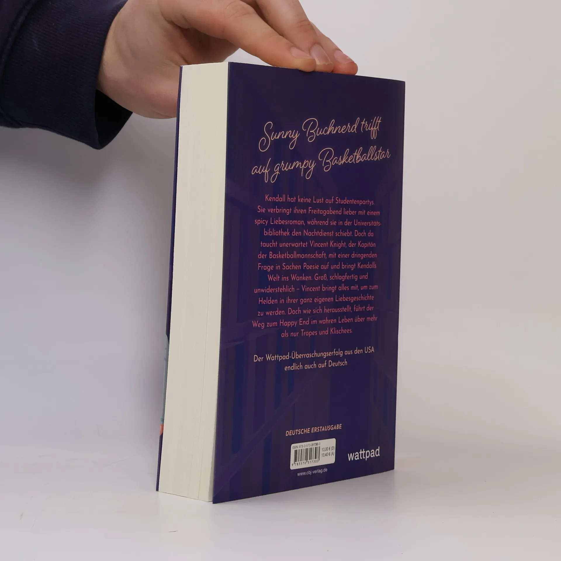 Sunny Buchnerd trifft auf grumpy Basketballstar Kendall hat keine Lust auf Studentenpartys. Sie verbringt ihren Freitagabend lieber mit einem spicy Liebesroman, während sie in der Universitätsbibliothek den Nachtdienst schmeißt. Doch als unerwartet Vincent Knight, der Kapitän der Basketballmannschaft und wandelnder Herzschmerzmagnet, mit verletztem Handgelenk, schlechter Laune und einer dringenden Frage in Sachen Poesie auftaucht, gerät ihre Welt ins Wanken. Groß, schlagfertig und unwiderstehlich – Vincent bringt alles mit, um zum Helden in Kendalls ganz eigener Liebesgeschichte zu werden. Doch wie sich herausstellt führt der Weg zum Happy End im wahren Leben über mehr als nur Tropes und Klischees. Der Wattpad-Überraschungserfolg aus den USA endlich auch auf Deutsch