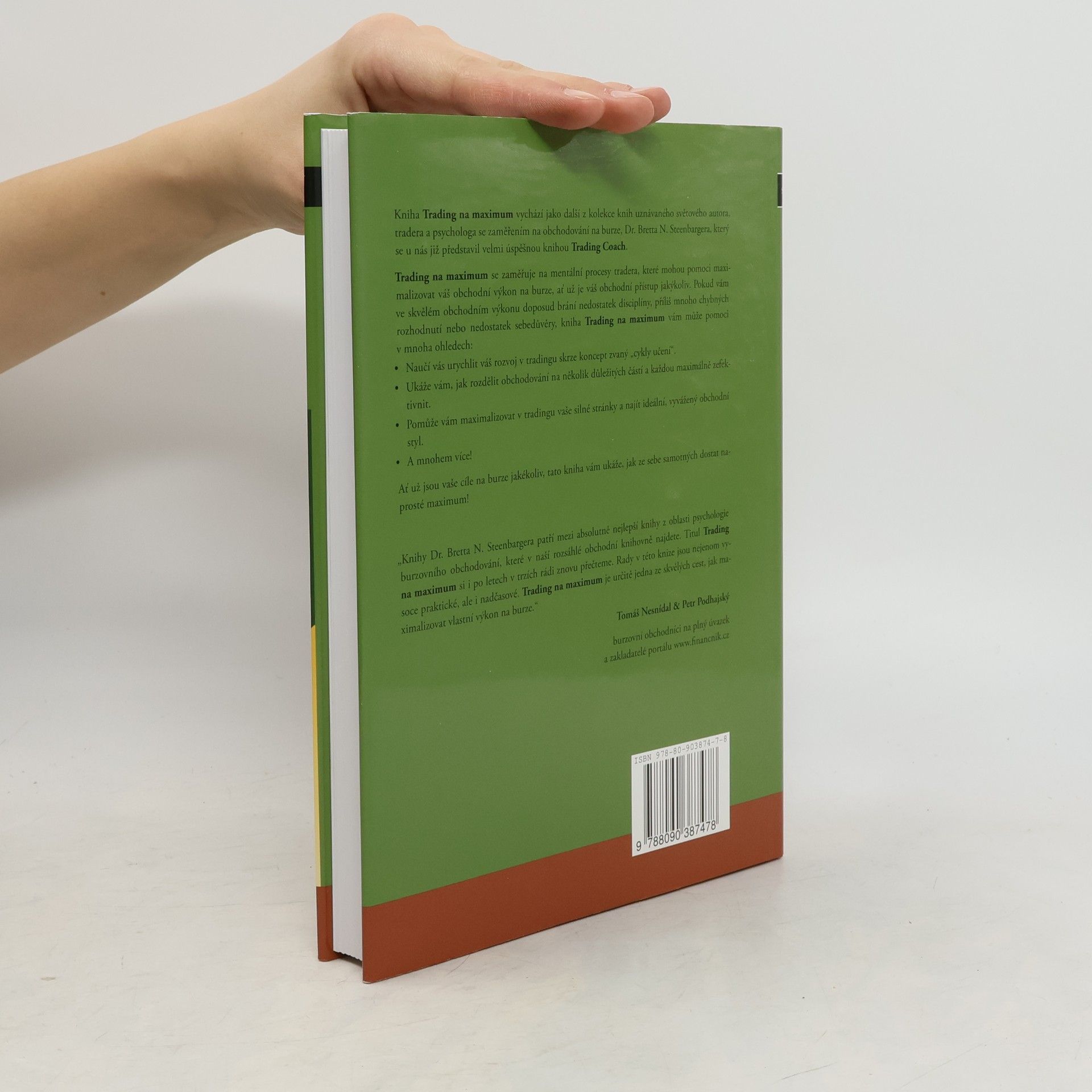 Kniha, českou verzí "Enhancing Trader Performance", se zaměřuje na psychologické techniky pro zvýšení výkonu na burze, přičemž trading je z 80 % o psychologii a pouze z 20 % o technice. Pokud nevíte, jak zvládnout psychologické aspekty, je tato kniha určena právě vám. I úspěšní tradeři zde najdou cenné rady pro další zlepšení. Kniha se soustředí na výkon a poskytuje praktické rady, jak dosáhnout stabilních výsledků, transformovat se ze slabého obchodníka na skvělého a maximalizovat obchodní výkon. Naučíte se, jak urychlit progres pomocí „cyklů učení“, efektivně rozdělit výkon na důležité části a maximálně využít své silné stránky. Kromě devíti kapitol obsahuje závěrečný Doslov o vývoji profesionálního obchodníka Scotta Pulciniho a Dodatky s informacemi a zdroji. Autor se zaměřuje na praktické zkušenosti a konkrétní rady, které můžete okamžitě začlenit do svého tradingu.