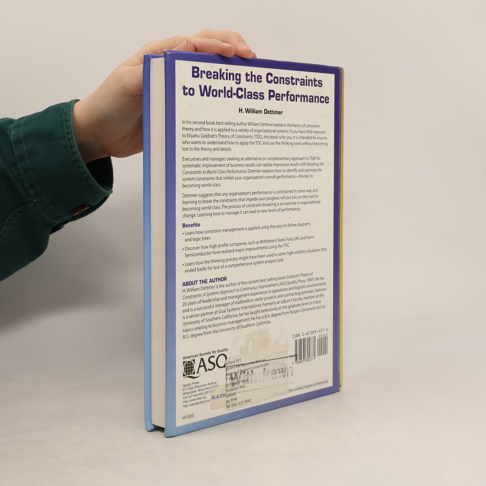 Executives and managers seeking an alternative or complementary approach to TQM for systematic improvement of business results can realize impressive results with this book. The author, Bill Dettmer, explains the basics of the theory of constraints and how it can be applied to a variety of organizational systems for maximum performance. This book is for people who have little experience with Goldratt's Theory of Constraints (TOC). This book is intended for anyone who wants to understand how to apply the logical thinking processes invented by the million copy best-selling author E.M. Goldratt in his book The Goal without going into a lot of theory and details about Goldratt's concepts. This book explains how to identify and optimize the system constraints that inhibit your organization's overall performance, which is the key to becoming worldclass.