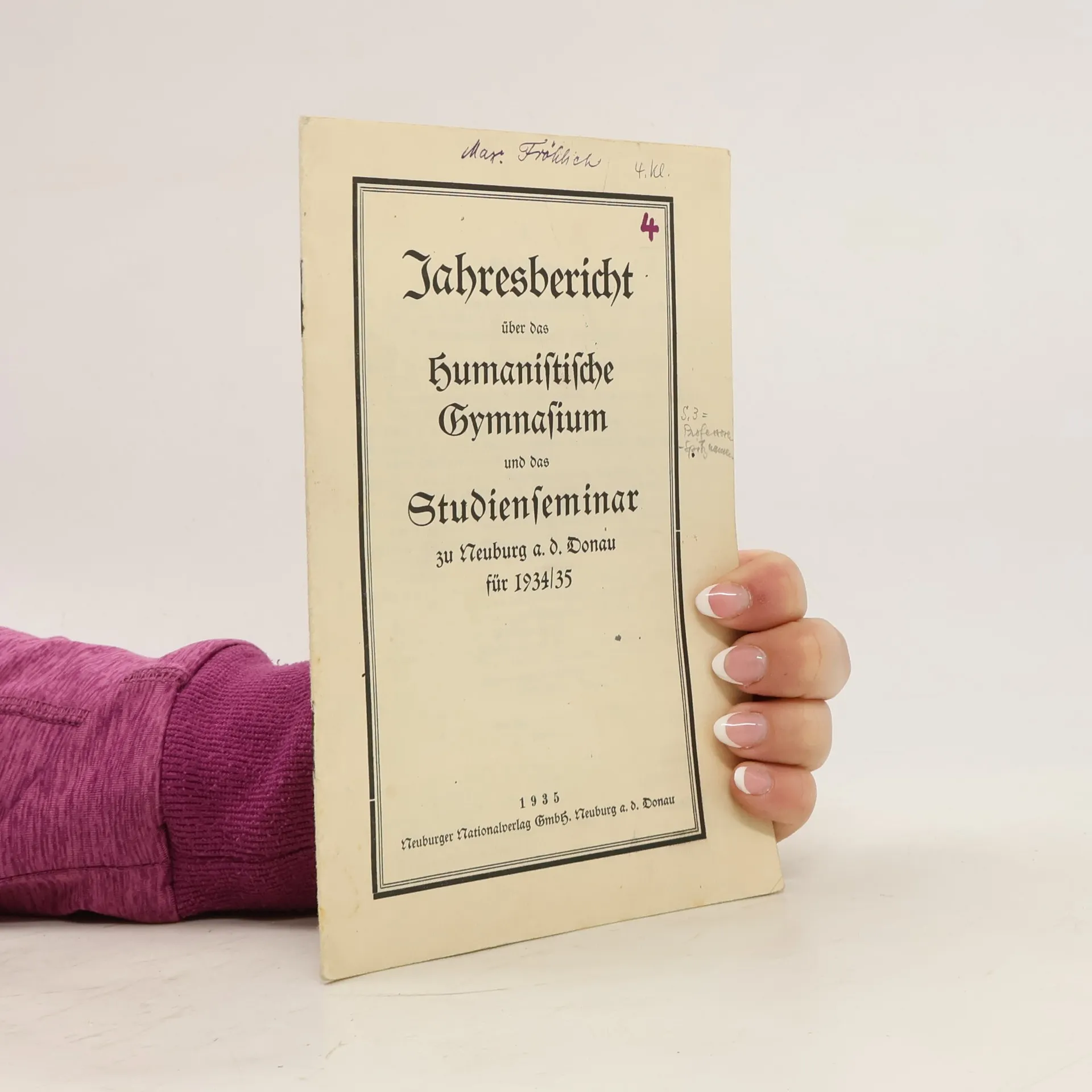 Jahresbericht über das humanistische Gymnasium und das Studienseminar zu Neuburg a. d. Donau für 1934/1935, Auteurscollectief