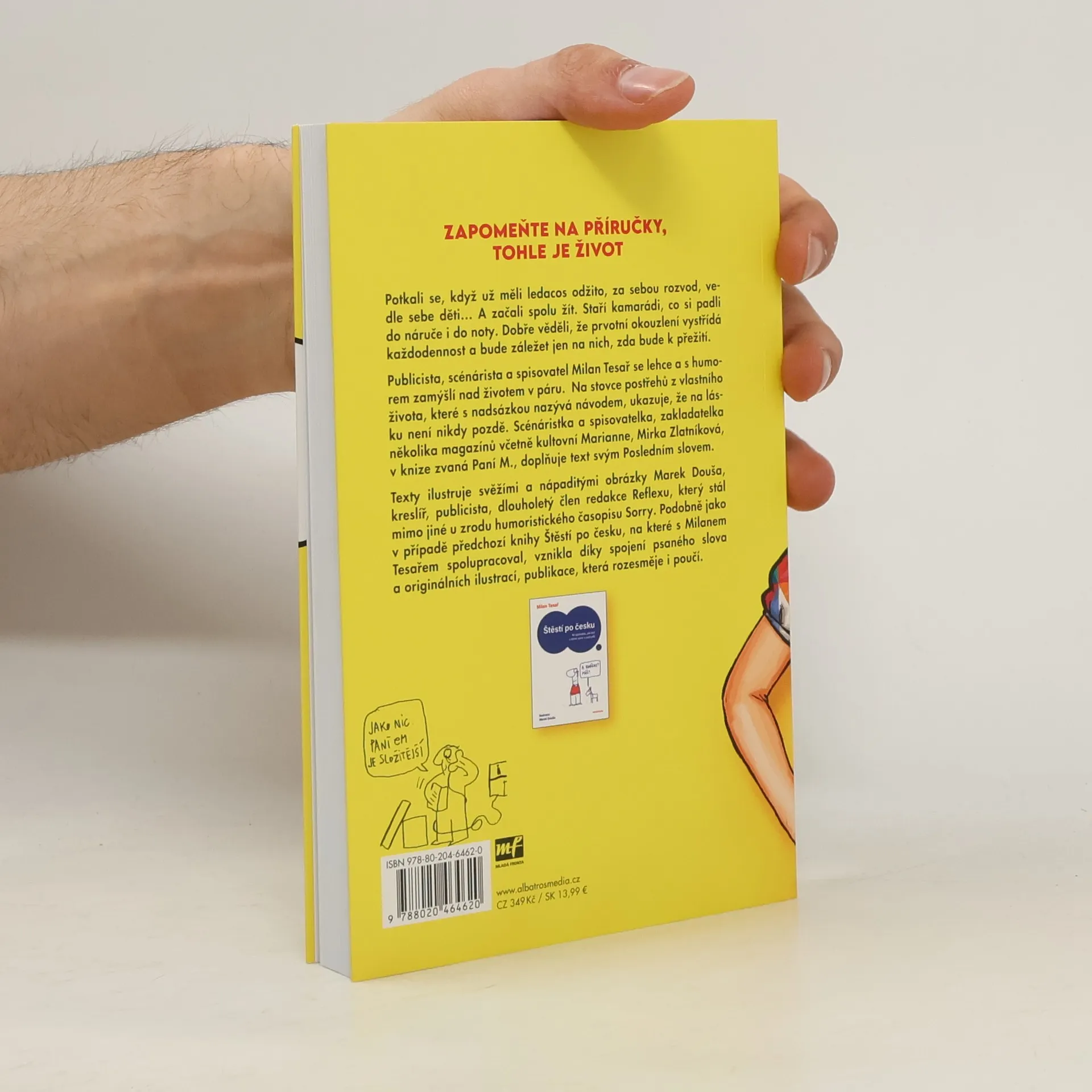 Zapomeňte na příručky, tohle je život. Potkali se, když už měli ledacos odžito, za sebou rozvod, vedle sebe děti… A začali spolu žít. Staří kamarádi, co si padli do náruče i do noty. Dobře věděli, že prvotní okouzlení vystřídá každodennost a bude záležet jen na nich, zda bude k přežití. A je! Protože našli návod... Publicista, scénárista a spisovatel Milan Tesař se lehce a s humorem zamýšlí nad životem v páru. Na stovce postřehů z vlastního života, které s nadsázkou nazývá návodem, ukazuje, že na lásku není nikdy pozdě. Scénáristka a spisovatelka, zakladatelka několika magazínů včetně kultovní Marianne, Mirka Zlatníková, v knize zvaná Paní M., doplňuje text svým Posledním slovem. Texty ilustruje svěžími a nápaditými obrázky Marek Douša, kreslíř, publicista, dlouholetý člen redakce Reflexu, který stál mimo jiné u zrodu humoristického časopisu Sorry. Podobně jako v případě předchozí knihy Štěstí po česku, na které s Milanem Tesařem spolupracoval, vznikla díky spojení psaného slova a originálních ilustrací, publikace, která rozesměje i poučí.