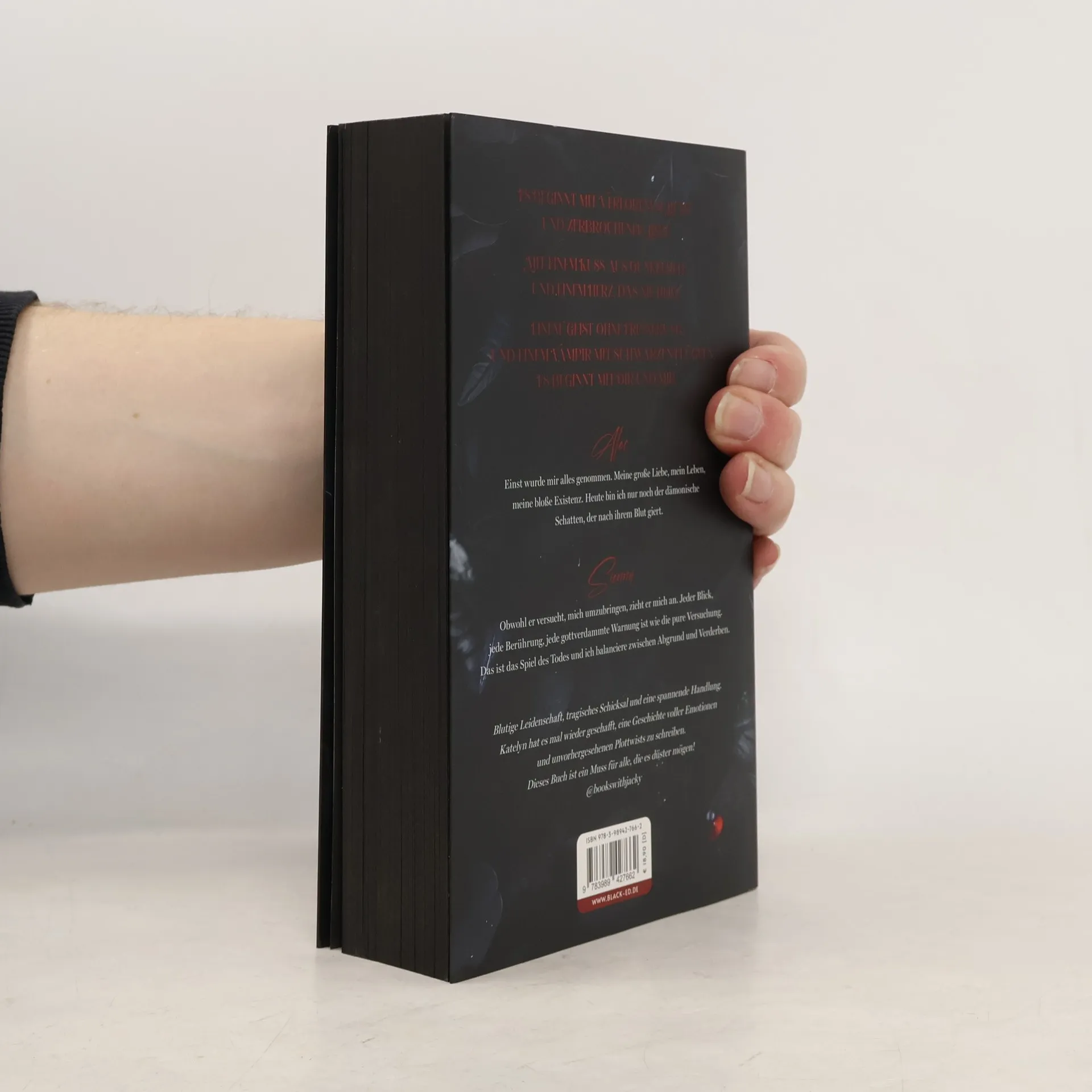 +++ Aufwendig gestaltete Ausgabe mit Farbschnitt und weißer Schrift auf schwarzen Seiten+++ Es beginnt mit verlorenem Licht und zerbrochener Liebe. Mit einem Kuss aus Dunkelheit und einem Herz, das nie heilt. Einem Geist ohne Erinnerung und einem Vampir mit schwarzen Flügeln. Es beginnt mit dir und mir. Einst war Cassiel ein Engel, bis Verrat ihn in die Finsternis stürzte und seine Flügel raubte. Heute lebt er als Alec, ein Vampir, der seine Wunden mit Blut, Rache und Vergessen zu stillen versucht. Jedoch kann nichts den Schmerz vertreiben – bis er auf Sienna trifft. Ihre Unschuld weckt in ihm das Licht, das er verloren glaubte. Aber Alec erkennt bald, dass Sienna mehr ist als nur eine Zufallsbekanntschaft. In ihr wohnt ein Geheimnis, das tief in seiner Vergangenheit verwurzelt ist – und mit jedem Schritt in ihre Nähe erwacht sein alter Schmerz. Ein Spiel aus Blut und Schatten beginnt, bei dem nicht nur ihre Leben, sondern auch ihre Herzen auf dem Spiel stehen.