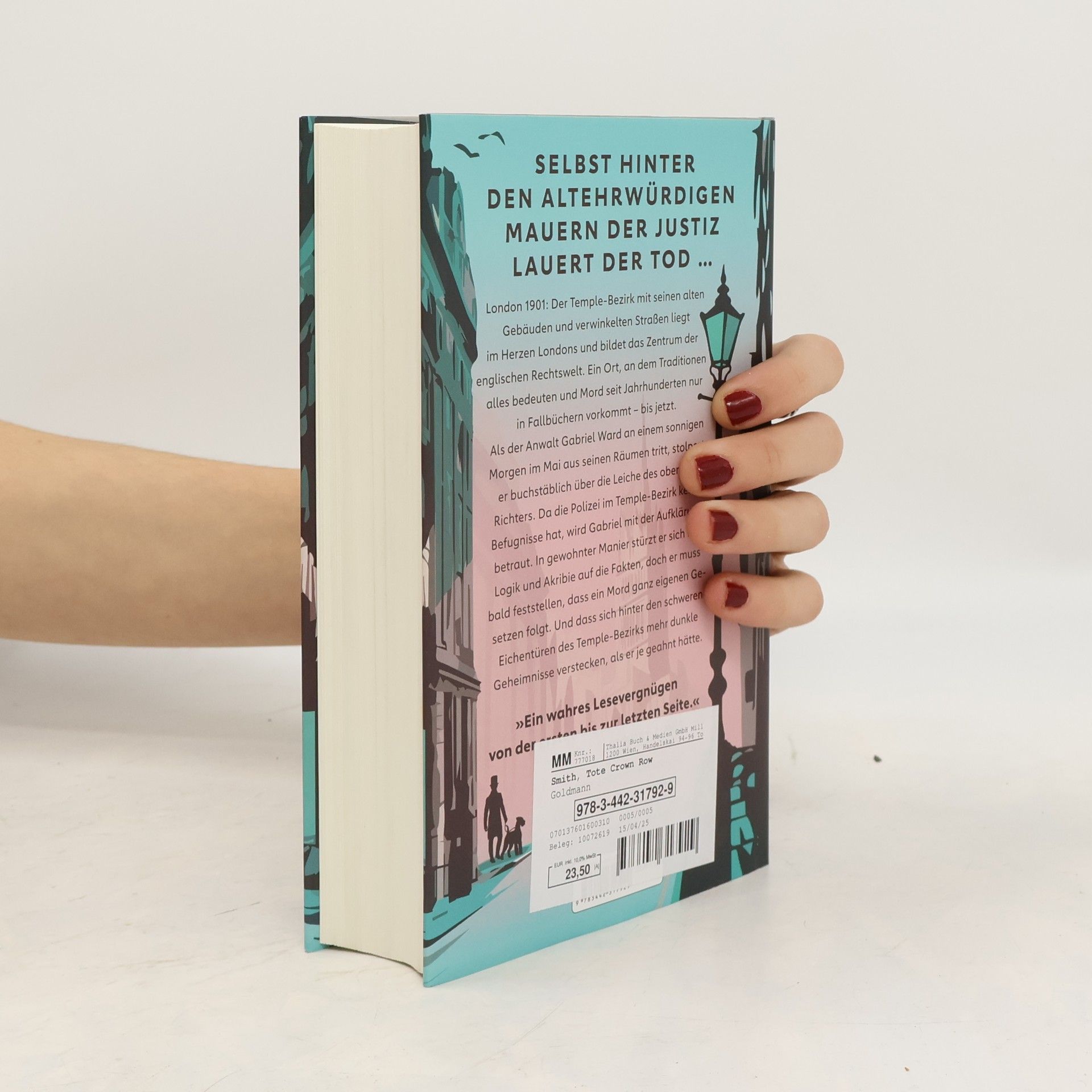 »Ein wahres Lesevergnügen von der ersten bis zur letzten Seite.« Sunday Times London 1901: Der Temple-Bezirk mit seinen alten Gebäuden und verwinkelten Straßen liegt im Herzen Londons und bildet das Zentrum der englischen Rechtswelt. Ein Ort, an dem Traditionen alles bedeuten und Mord seit Jahrhunderten nur in Fallbüchern vorkommt – bis jetzt … Als der Anwalt Gabriel Ward an einem sonnigen Morgen im Mai aus seinen Räumen tritt, stolpert er buchstäblich über die Leiche des obersten Richters. Da die Polizei im Temple-Bezirk keine Befugnisse hat, wird Gabriel mit der Aufklärung betraut. In gewohnter Manier stürzt er sich mit Logik und Akribie auf die Fakten, doch er muss bald feststellen, dass ein Mord ganz eigenen Gesetzen folgt. Und dass sich hinter den schweren Eichentüren des Temple-Bezirks mehr dunkle Geheimnisse verstecken, als er je geahnt hätte …