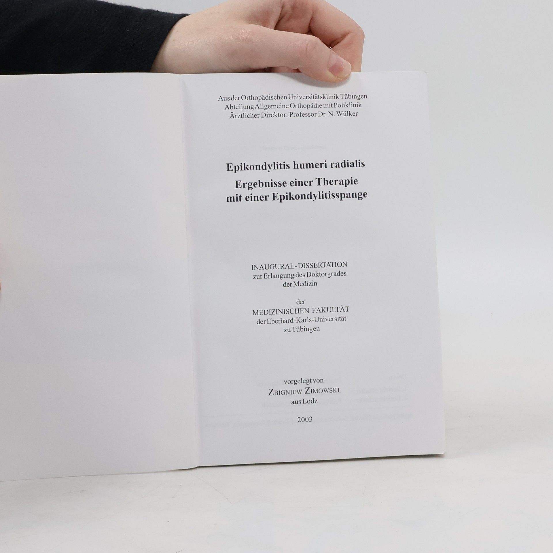 Epikondylitis humeri radialis. Ergebnisse einer Therapie mit einer Epikondylitisspange, Zbigniew Zimowski