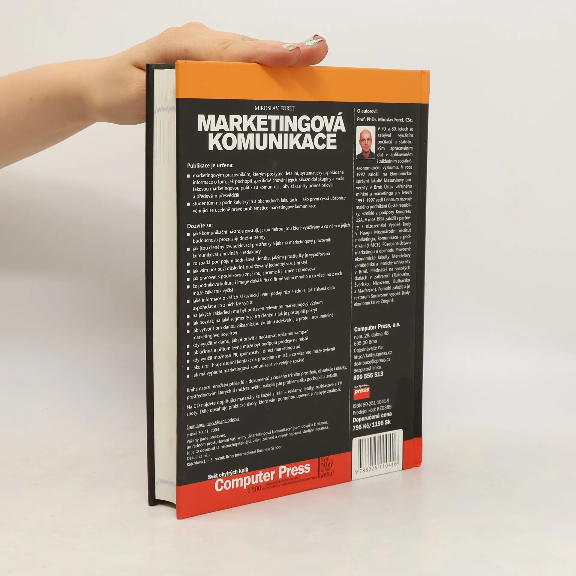 Komunikace se zákazníkem patří ke klíčovým oblastem marketingu. Přehledně koncipovaná publikace vás krok za krokem zasvětí do celého procesu. Poradí vám jak zákazníka poznat, jak vytvořit sdělení šité přesně na něj, jaký vybrat komunikační kanál tak, aby ho co nejlépe i nejefektivněji oslovil, a jak vyhodnotit úspěšnost celé akce. Autor Miroslav Foret patří mezi přední odborníky na marketing u nás.