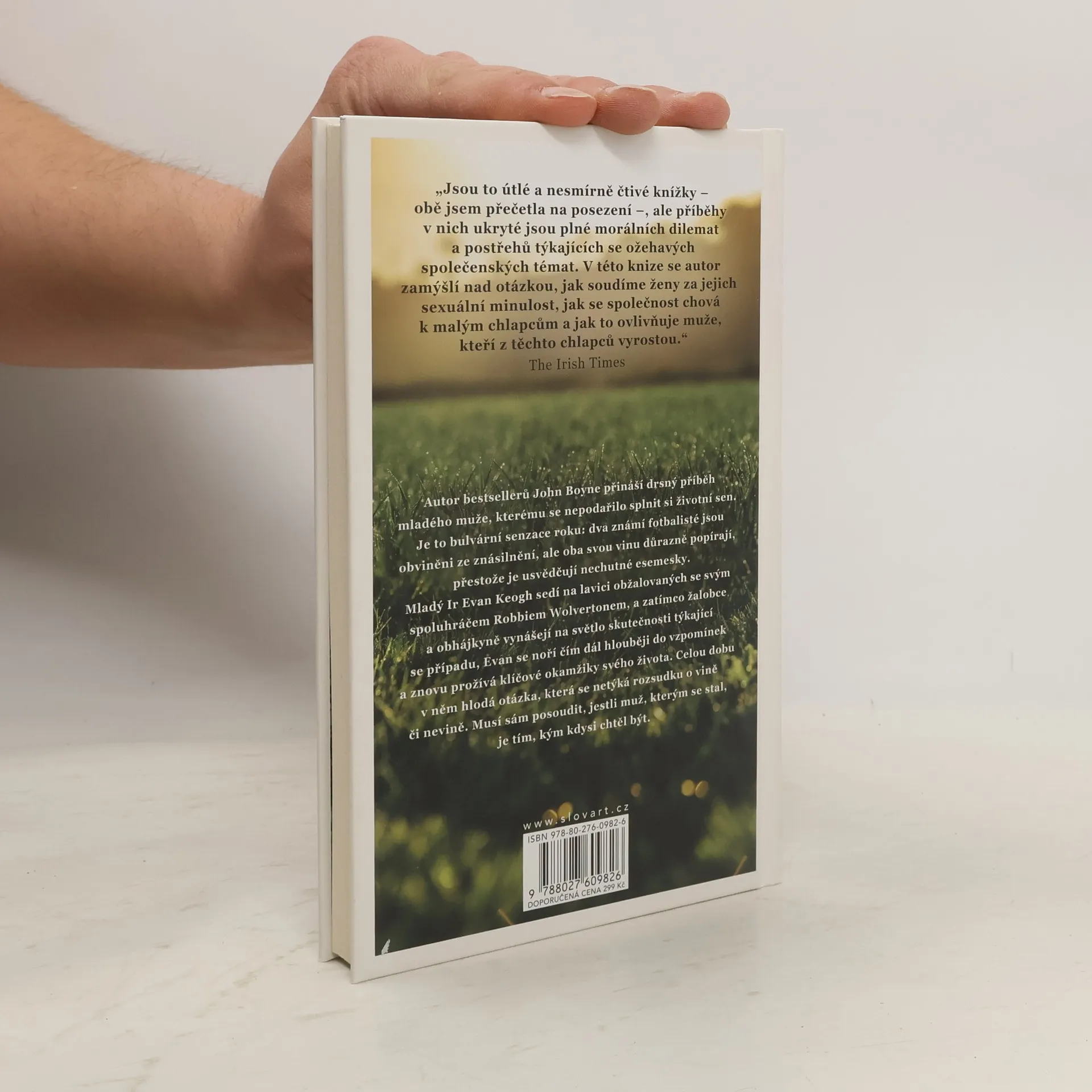 Autor bestsellerů John Boyne přináší drsný příběh mladého muže, kterému se nepodařilo splnit si životní sen. Je to bulvární senzace roku: dva známí fotbalisté jsou obviněni ze znásilnění, ale oba svou vinu důrazně popírají, přestože je usvědčují nechutné esemesky. Mladý Ir Evan Keogh sedí na lavici obžalovaných se svým spoluhráčem Robbiem Wolvertonem, a zatímco žalobce a obhájkyně vynášejí na světlo skutečnosti týkající se případu, Evan se noří čím dál hlouběji do vzpomínek a znovu prožívá klíčové okamžiky svého života. Celou dobu v něm hlodá otázka, která se netýká rozsudku o vině či nevině. Musí sám posoudit, jestli muž, kterým se stal, je tím, kým kdysi chtěl být.