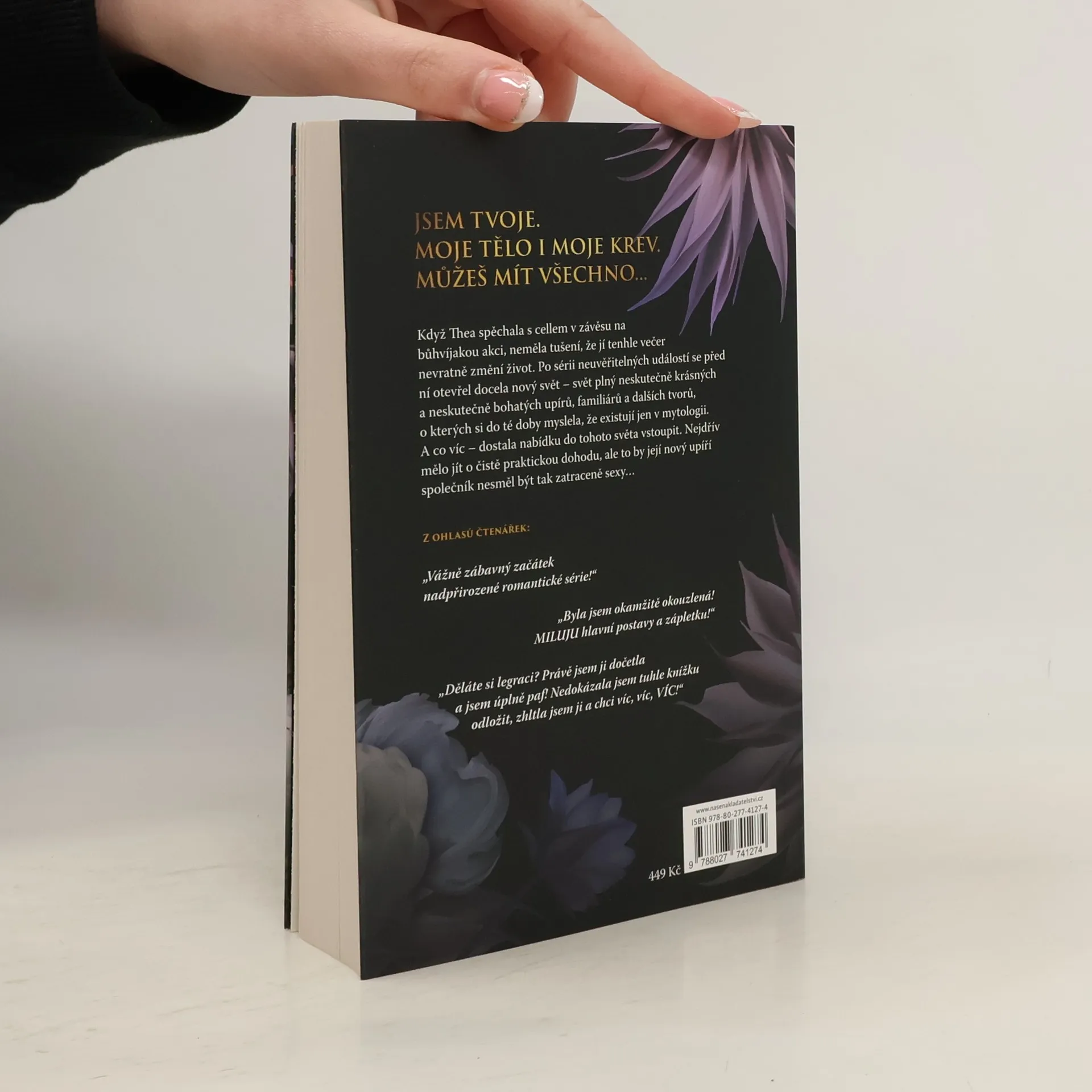 Julian Rousseaux má problém. Je single a pro nejbohatší upíry na světě právě začíná společenská sezóna. Sice by si raději sám proklál srdce kůlem, než aby se musel účastnit hledání manželky, ale jelikož je nejstarším svobodným potomkem svého rodu, právě tohle se od něj očekává– ať se mu to líbí, nebo ne. Když během galavečera doslova zakopne o cellistku Theu, ví, že je to poslední osoba na světě, do které by se mohl zamilovat. Je příliš nevinná, příliš milá – a hlavně je to člověk. Ale teď, když se dozvěděla o jeho světě, se z ní taky stává chodící terč. Potřebuje ochranu – a on potřebuje falešnou přítelkyni, aby odradil příliš dychtivé potenciální partnerky. A tak Thee učiní neodolatelnou nabídku: bude předstírat, že je jeho milenka, a on jí za to změní život, ochrání ji a uhradí dluhy za léčbu její matky. Thea souhlasí, ale s každým dalším okamžikem, který spolu sdílejí, se objevují nová nebezpečí; touha stejně zakázaná, jako jejich ukradené dotyky a tajemství, která by je od sebe mohla navždy odtrhnout.