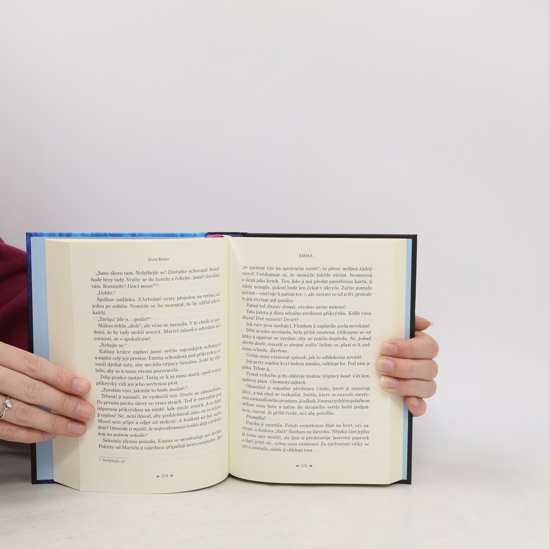 Napětí, špionáž a zničující láska. Debutový román ikony francouzského filmu. Emma, která pracuje jako masérka v jednom z bretaňských center thalassoterapie, přijme nabídku vyškolit personál luxusního wellness centra v Ománu. Exotická země ji zcela okouzlí, stejně jako šéf resortu, syn vlivného ministra. Neskutečně přitažlivý muž však za svým okouzlujícím úsměvem skrývá nejedno tajemství – a Emma se tak ocitá uprostřed smrtelně nebezpečných politických intrik. Začíná hra na kočku a myš plná pronásledování, nástrah a nečekaných zvratů. Emma se však nehodlá stát snadným terčem…