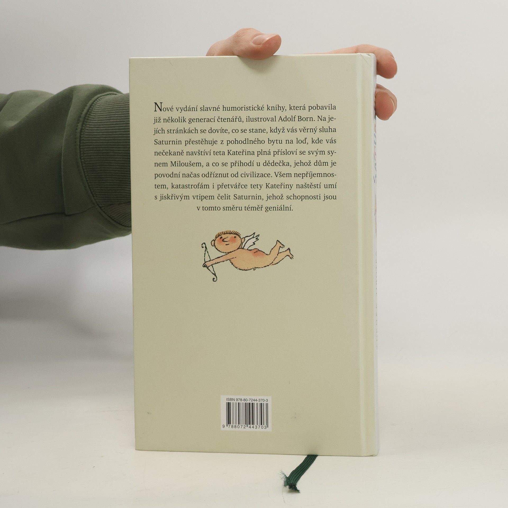 Nové vydání slavné humoristické knihy, která pobavila již několik generací čtenářů, je podle ankety Kniha mého srdce vítězem u českých čtenářů, tentokrát doplnil barevnými ilustracemi Adolf Born. Na jejích stránkách se dovíte, co se stane, když vás věrný sluha Saturnin přestěhuje z pohodlného bytu na loď, kde vás navštíví se svým synem Miloušem teta Kateřina, která omračuje spoustou přísloví a ráda by se znovu provdala, a co se přihodí u dědečka, jehož dům je povodní načas odříznut od civilizace. Všem nepříjemnostem, katastrofám i přetvářce tety Kateřiny naštěstí umí s jiskřivým vtipem čelit Saturnin. Jeho schopnosti jsou téměř geniální, a přitom je to tak prosté, jak píše o Saturninovi v dopise dědeček: „V bláznivých nápadech toho chlapíka je kus poezie, jeho humor, fantazie a podivuhodné myšlenkové přemety dovedou udělat detektivku z jízdního řádu a člověk cítí, že nemusil tak zestárnout, kdyby si byl nezapomněl hrát.“