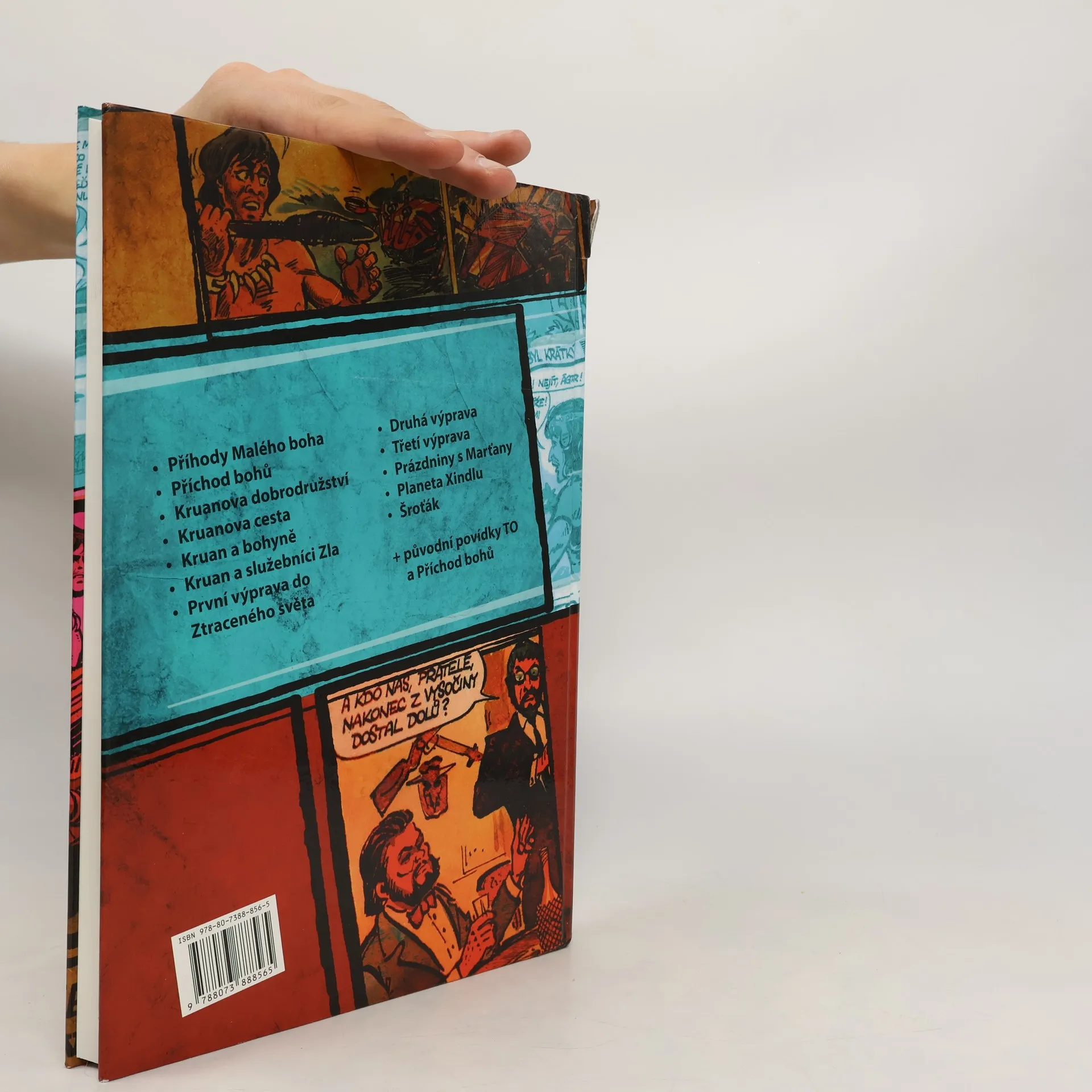 Celá šestidílná komiksová série o Malém bohovi a Kruanovi (Pod paprsky Zářícího) od spisovatele, scenáristy a dlouholetého šéfredaktora časopisu ABC Vlastislav Tomana poprvé vychází společně, doplněná o dvě povídky, jež se v roce 1973 staly předlohou pro napsání scénáře pro tyto komiksy. Ve Zlaté knize najdete i další populární komiksy o třech výpravách do Ztraceného světy a další ukázky Tomanovy tvorby pro jiné časopisy. Obsah: Příhody Malého boha (1) Příchod bohů (2) Kruanova dobrodružství (3) Kruanova cesta (4) Kruan a bohyně (5) Kruan a služebníci Zla (6) První výprava do Ztraceného světa Druhá výprava Třetí výprava Prázdniny s Marťany Planeta Xindlu Šroťák + původní povídky TO a Příchod bohů