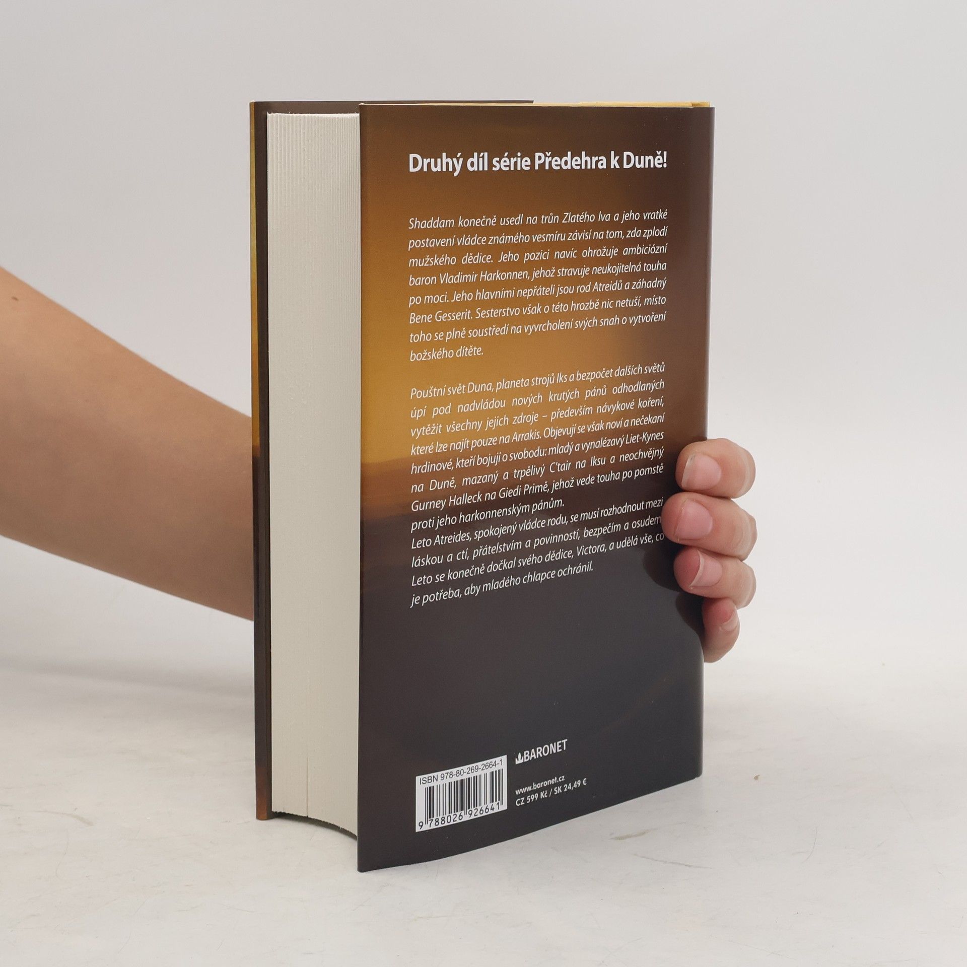 Druhý díl série Předehra k Duně! Shaddam konečně usedl na trůn Zlatého lva a jeho vratké postavení vládce známého vesmíru závisí na tom, zda zplodí mužského dědice. Jeho pozici navíc ohrožuje ambiciózní baron Vladimir Harkonnen, jehož stravuje neukojitelná touha po moci. Jeho hlavními nepřáteli jsou rod Atreidů a záhadný Bene Gesserit. Sesterstvo však o této hrozbě nic netuší, místo toho se plně soustředí na vyvrcholení svých snah o vytvoření božského dítěte. Pouštní svět Duna, planeta strojů Iks a bezpočet dalších světů úpí pod nadvládou nových krutých pánů odhodlaných vytěžit všechny jejich zdroje – především návykové koření, které lze najít pouze na Arrakis. Objevují se však noví a nečekaní hrdinové, kteří bojují o svobodu: mladý a vynalézavý Liet-Kynes na Duně, mazaný a trpělivý C’tair na Iksu a neochvějný Gurney Halleck na Giedi Primě, jehož vede touha po pomstě proti jeho harkonnenským pánům. Leto Atreides, spokojený vládce rodu, se musí rozhodnout mezi láskou a ctí, přátelstvím a povinností, bezpečím a osudem. Leto se konečně dočkal svého dědice, Victora, a udělá vše, co je potřeba, aby mladého chlapce ochránil.