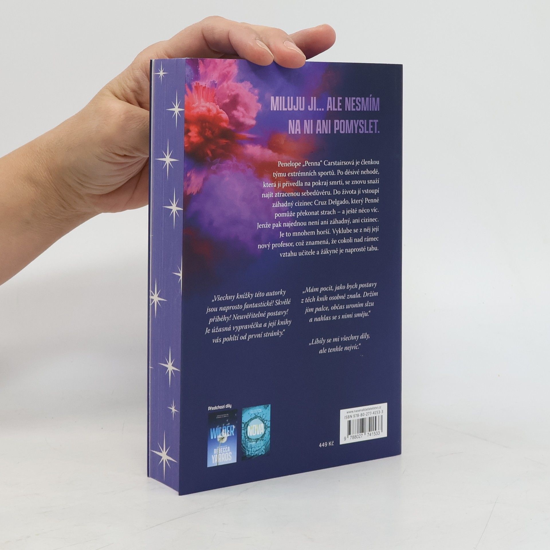 Jmenuje se Penna Carstairsová. Patří mezi Odpadlíky a říkají jí Rebelka. Renomovaný sportovní časopis ji jmenoval nejvíce sexy sportovkyní roku. V extrémním sportu neexistuje pravidlo, které by neporušila, z genderových předsudků si denně dělá legraci. Potkal jsem ji v jednom baru ve Vegas. Ilegálně jsem s ní skočil padákem z ruského kola. Strávili jsme spolu jedinou šílenou, neskutečnou noc. Jenže teď jsem v háji. Protože ta žena, kterou nemůžu dostat z hlavy, je zároveň jedinou, jíž se už nikdy nemůžu znovu dotknout. Jsem Dr. Cruz Delgado – nejmladší profesor na tomto kampusu. A Penelope Carstairsová právě vstoupila do mé třídy.