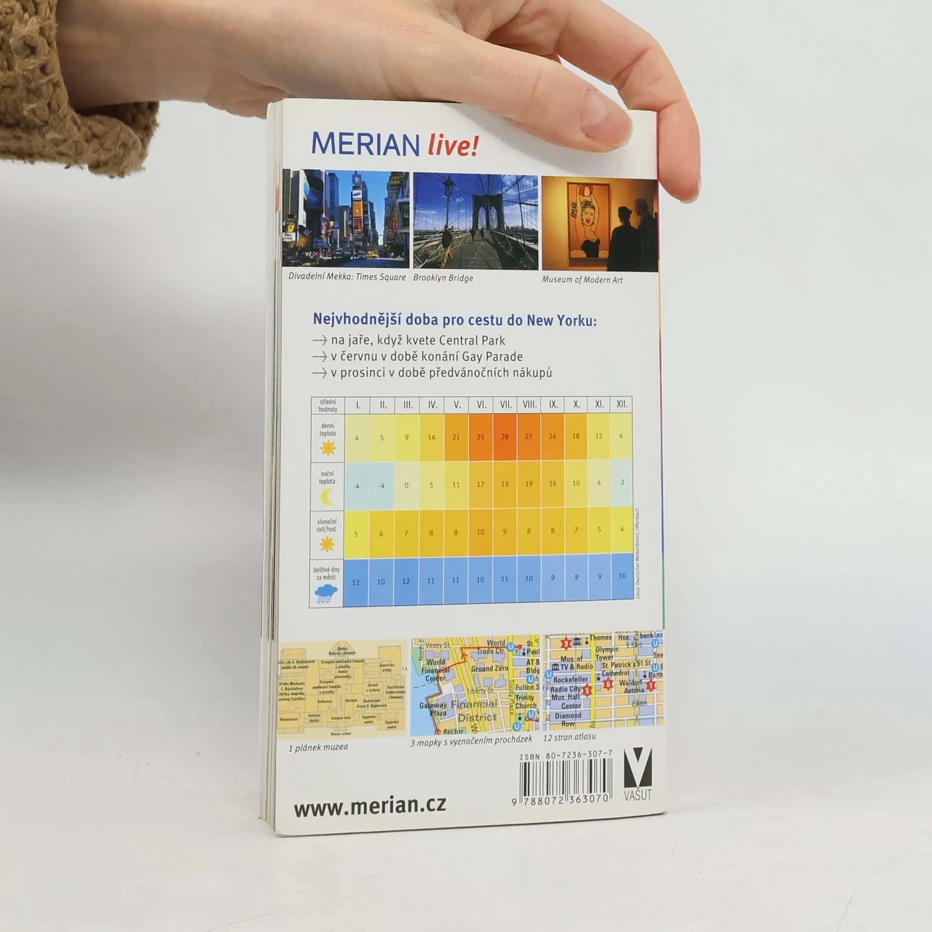 Průvodce seznamuje ve stručnosti s nejznámějšími turistickými atraktivitami jednoho z největších světových měst. Česká mutace vybraných svazků ediční řady německého vydavatelství Merian přibližuje čtenářům ve stručnosti místa, která by při své návštěvě New Yorku rozhodně něeměli vynechat. Podstatnou část příručky tvoří informace o možnostech stravování, nákupů, kulturního vyžití (koncerty, divadlo, show...), nabídkách akcí pro děti apod. Množství barevných fotografií, doplňkové mapky.