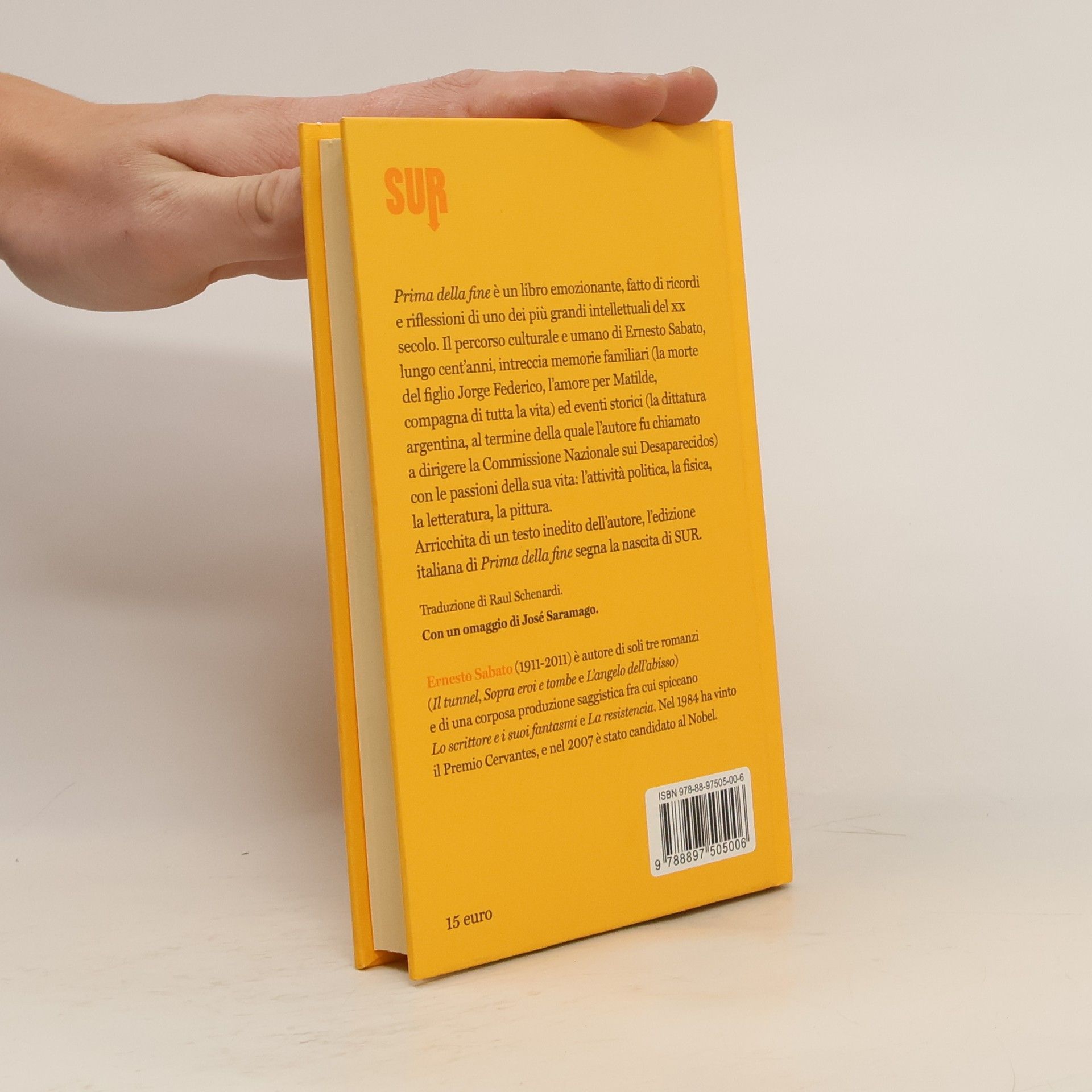 Prima della fine è un libro emozionante, fatto di ricordi e riflessioni di uno dei più grandi intellettuali del XX secolo. Il percorso culturale e umano di Ernesto Sabato, lungo cent’anni, intreccia memorie familiari (la morte del figlio Jose Federico, l’amore per Matilde, compagna di tutta la vita) ed eventi storici (la dittatura argentina, al termine della quale l’autore fu chiamato a dirigere la Commissione Nazionale sui Desaparecidos) con le passioni della sua vita: l’attività politica, la fisica, la letteratura, la pittura. Con un omaggio di José Saramago.