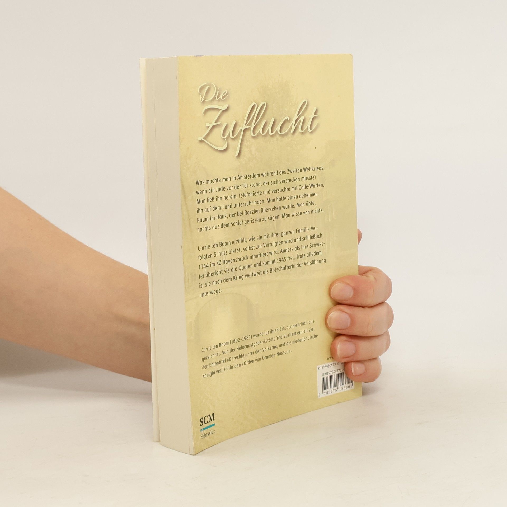 Was machte man in Amsterdam während des Zweiten Weltkriegs, wenn ein Jude vor der Tür stand, der§sich verstecken musste? Man ließ ihn herein, telefonierte und versuchte mit Code-Worten, ihn auf dem§Land unterzubringen. Man hatte einen geheimen Raum im Haus, der bei Razzien übersehen wurde. Man§übte, nachts aus dem Schlaf gerissen zu sagen: Man wisse von nichts.§Corrie ten Boom (1892 1983) erzählt, wie sie mit ihrer ganzen Familie Verfolgten Schutz bietet,§selbst zur Verfolgten wird und schließlich 1944 im KZ Ravensbrück inhaftiert wird. Anders als ihre§Schwester überlebt sie die Qualen und kommt 1945 frei. Trotz alledem ist sie nach dem Krieg weltweit§als Botschafterin der Versöhnung unterwegs. Für ihren Einsatz wurde sie mehrfach ausgezeichnet. Von§der Holocaustgedenkstätte Yad Vashem erhielt sie den Ehrentitel Gerechte unter den Völkern , und§die niederländische Königin verlieh ihr den Orden von Oranien-Nassau .§Der internationale Bestseller erscheint in der 31. deutschen Auflage erstmalig in einem größeren§Format.
