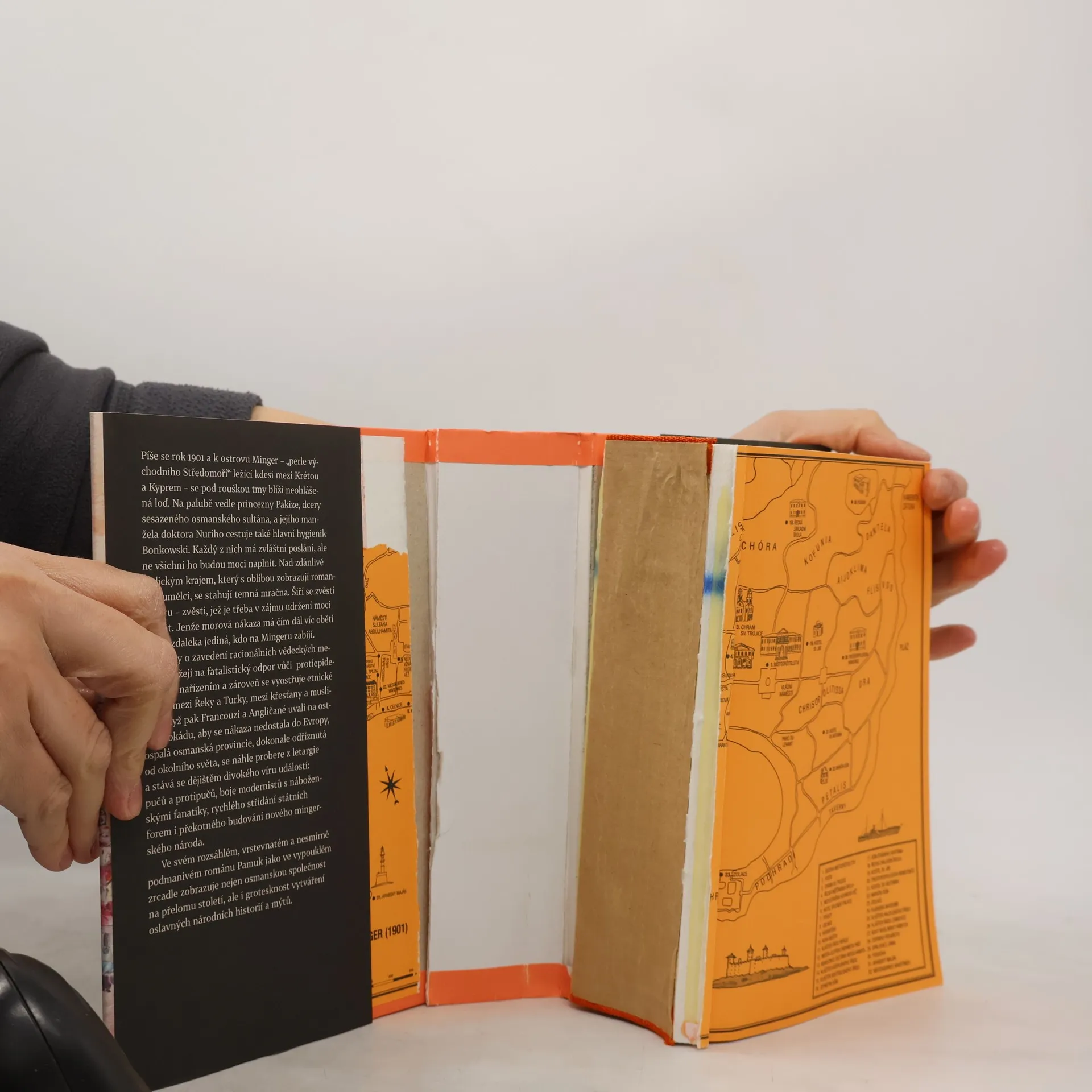 Historický román s detektivní zápletkou od tureckého nositele Nobelovy ceny za literaturu. Rok 1900: Na jistém fiktivním ostrově Osmanské říše mezi Krétou a Kyprem vládne napětí mezi místními muslimy a ortodoxními Řeky. Když ostrov zasáhne mor, obě strany se začnou vzájemně obviňovat z jeho zatažení na ostrov. Sultán Abdul Hamid II. pošle na ostrov svého nejlepšího odborníka na karanténu, aby zastavil šíření epidemie. Jenomže je to pravoslavný křesťan, a proto jej mnozí odmítají poslouchat. A pak dojde k vraždě. Mor se dál šíří a mrtvých přibývá.