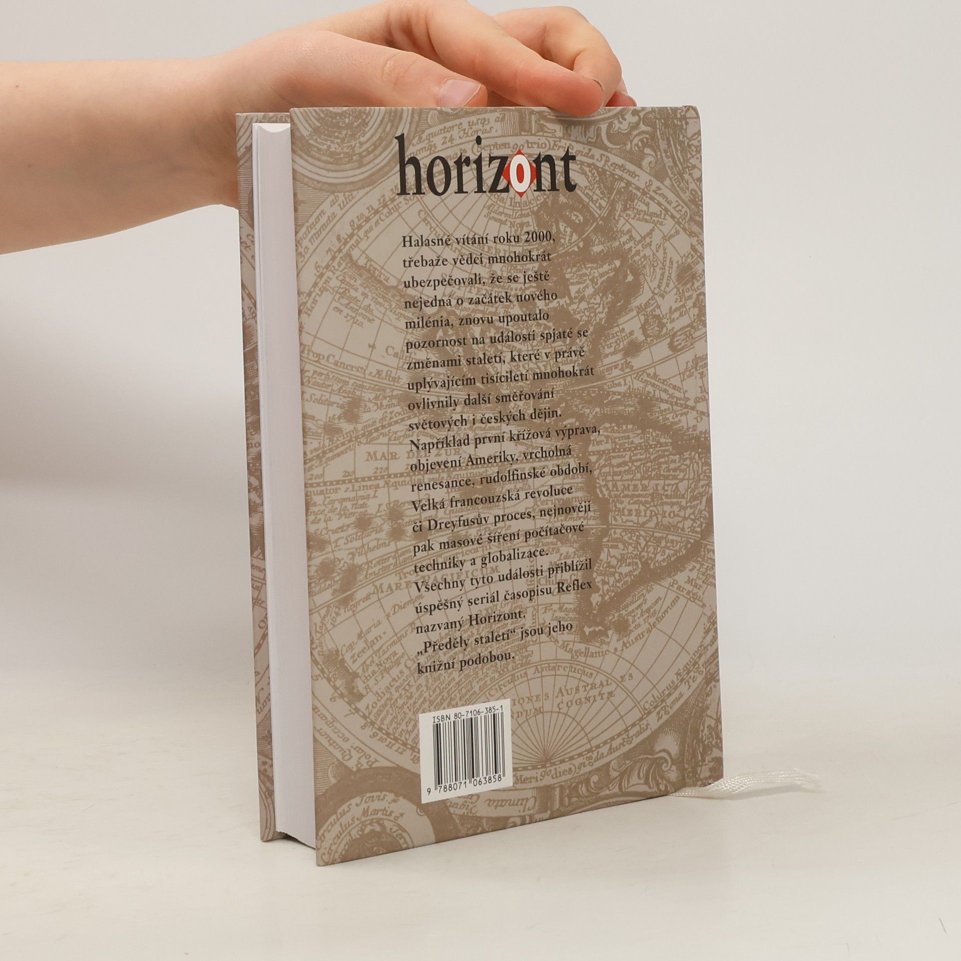 České a světové dějiny v horizontech věků. Halasné vítání roku 2000, třebaže vědci mnohokrát ubezpečovali, že se ještě nejedná o začátek nového milénia, znovu upoutalo pozornost na události spjaté se změnami staletí, které v právě uplývajícím tisíciletí mnohokrát ovlivnila další směřování světových i českých dějin. Například první křížová výprava, objevení Ameriky, vrcholná renesance, rudolfinské období, Velká francouzská revoluce či Dreyfusův proces, nejnověji pak masové šíření počítačové techniky a globalizace. Všechny tyto události přiblížil úspěšný seriál časopisu Reflex nazvaný Horizont. \\\"Předěly staletí\\\" jsou jeho knižní podobou.