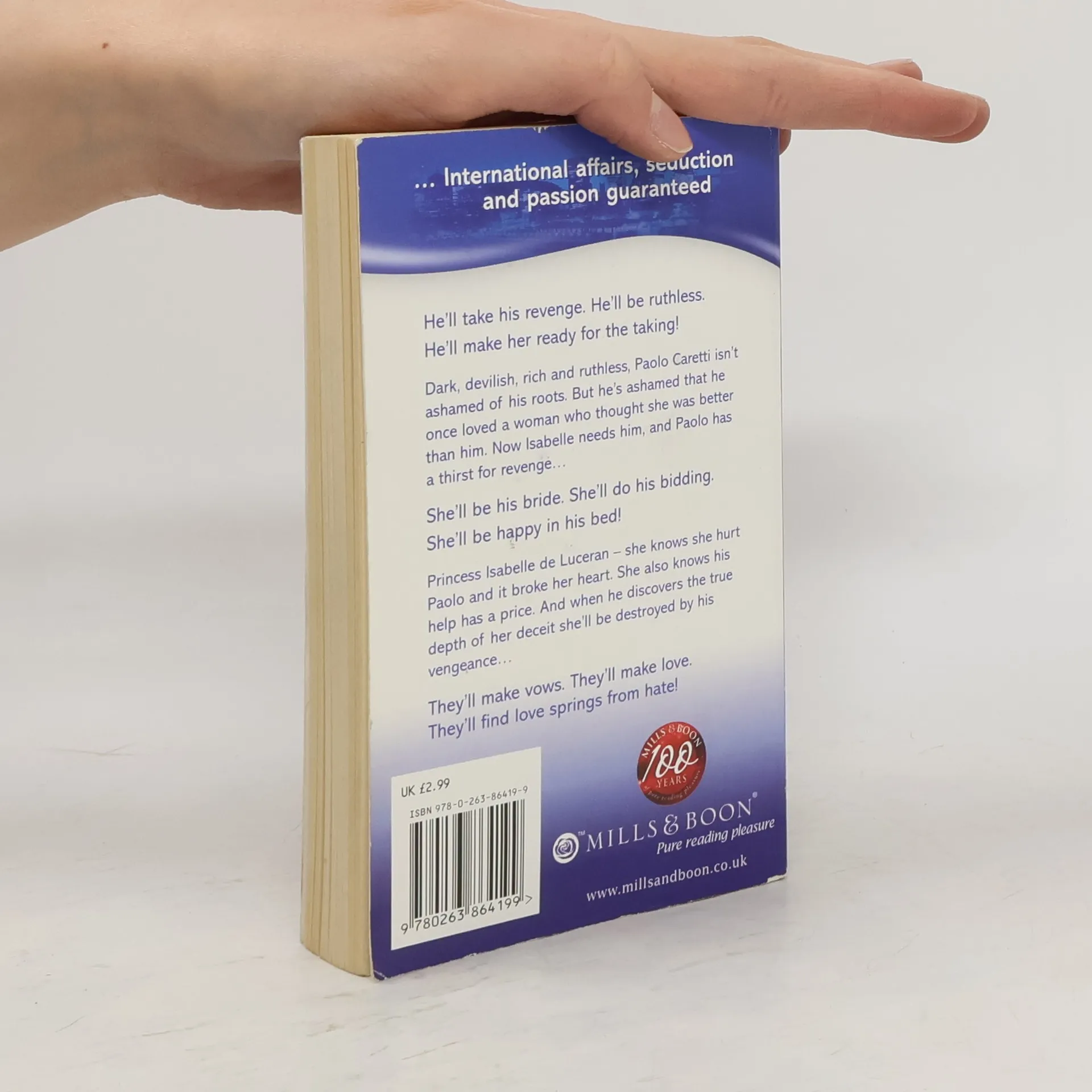 Dark, devilish Paolo Caretti can buy anything he wants. He isn't ashamed of where he comes from. But Isabelle's family wanted breeding, not billions. Rejected, he now wants vengeance.... Princess Isabelle loved Paolo, and it broke her heart to let him go. Now she needs his help. It will come at a price, but she has no choice.... They'll make vows. They'll make love. They'll find that love springs from hate