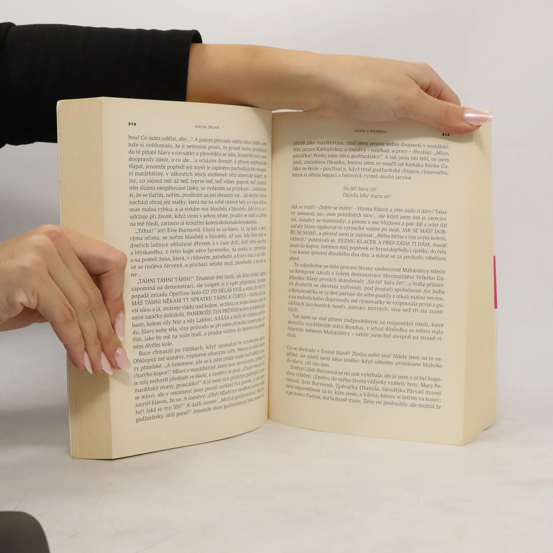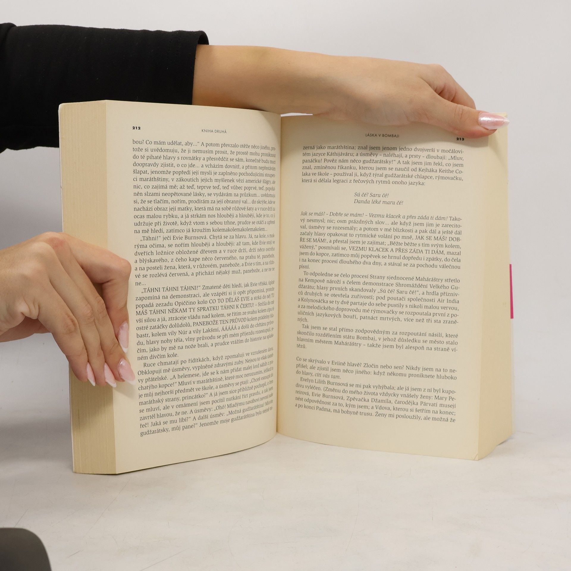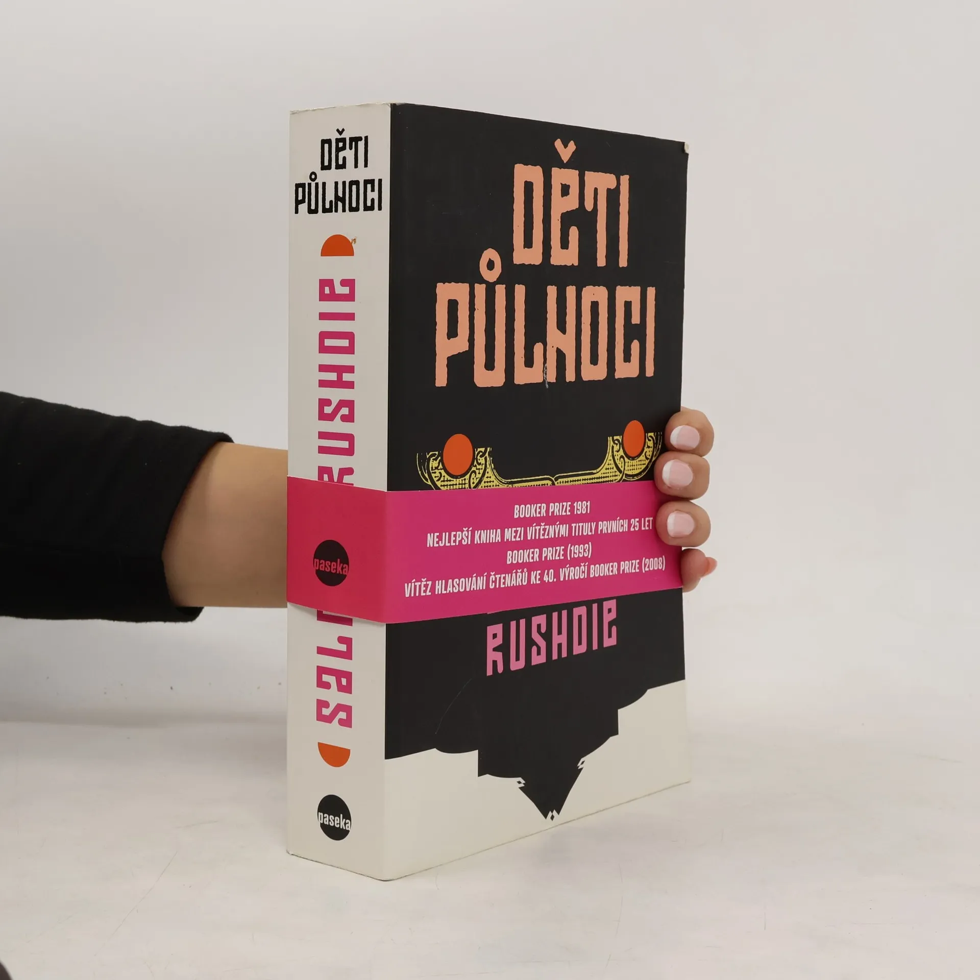 Salím Sináí, vypravěč a hlavní hrdina románu, je jedním z 1001 dětí zrozených v první hodině indické nezávislosti a obdařených zázračnými schopnostmi, zároveň však bolestně spojených s historií a osudem své země. Jeho fascinující vyprávění, postupně se odvíjející mezi řadou indických a pákistánských měst, provede čtenáře ságou tří generací Salímovy rodiny, více než šesti desítkami let moderní indické historie i hrdinovou strastiplnou poutí za smyslem osudu vlastní existence, který jako by ztělesňoval rozporuplnou a stěží postižitelnou identitu samotné Indie. Rushdieho barvitá a podmanivá próza, mistrně mísící realitu s imaginací a kroniku politického vývoje s fantastickým příběhem, byla r. 1993 jmenována nejlepším z děl oceněných v předchozích pětadvaceti letech prestižní britskou literární cenou Booker Prize, r. 2008 zvítězila ve čtenářské anketě ke čtyřicátému výročí této ceny a dnes je řazena mezi stěžejní díla moderní světové literatury.