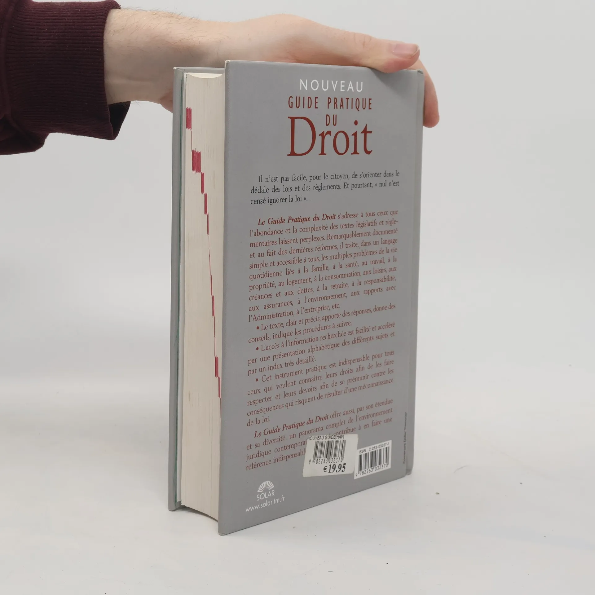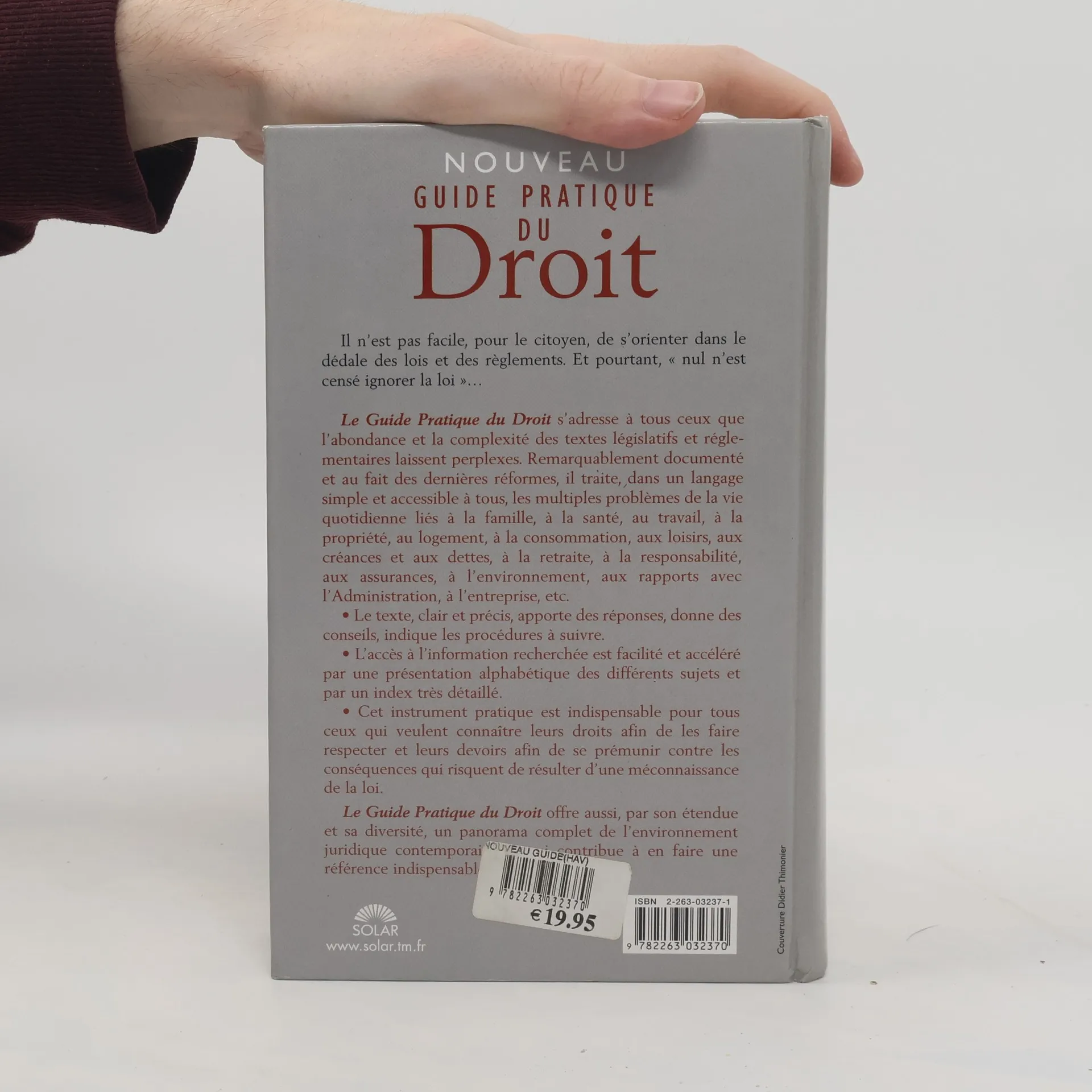 Il n'est pas facile, pour le citoyen, de s'orienter dans le dédale des lois et des règlements. Et pourtant, " nul n'est censé ignorer la loi "... Le Guide Pratique du Droit s'adresse à tous ceux que l'abondance et la complexité des textes législatifs et réglementaires laissent perplexes. Remarquablement documenté et au fait des dernières réformes, il traite, dans un langage simple et accessible à tous, les multiples problèmes de la vie quotidienne liés à la famille, à la santé, au travail, à la propriété, au logement, à la consommation, aux loisirs, aux créances et aux dettes, à la retraite, à la responsabilité, aux assurances, à l'environnement, aux rapports avec l'Administration, à l'entreprise, etc. * Le texte, clair et précis, apporte des réponses, donne des conseils, indique les procédures à suivre. * L'accès à l'information recherchée est facilité et accéléré par une présentation alphabétique des différents sujets et par un index très détaillé. * Cet instrument pratique est indispensable pour tous ceux qui veulent connaître leurs droits afin de les faire respecter et leurs devoirs afin de se prémunir contre les conséquences qui risquent de résulter d'une méconnaissance de la loi. Le Guide Pratique du Droit offre aussi, par son étendue et sa diversité, un panorama complet de l'environnement juridique contemporain, ce qui contribue à en faire une référence indispensable.