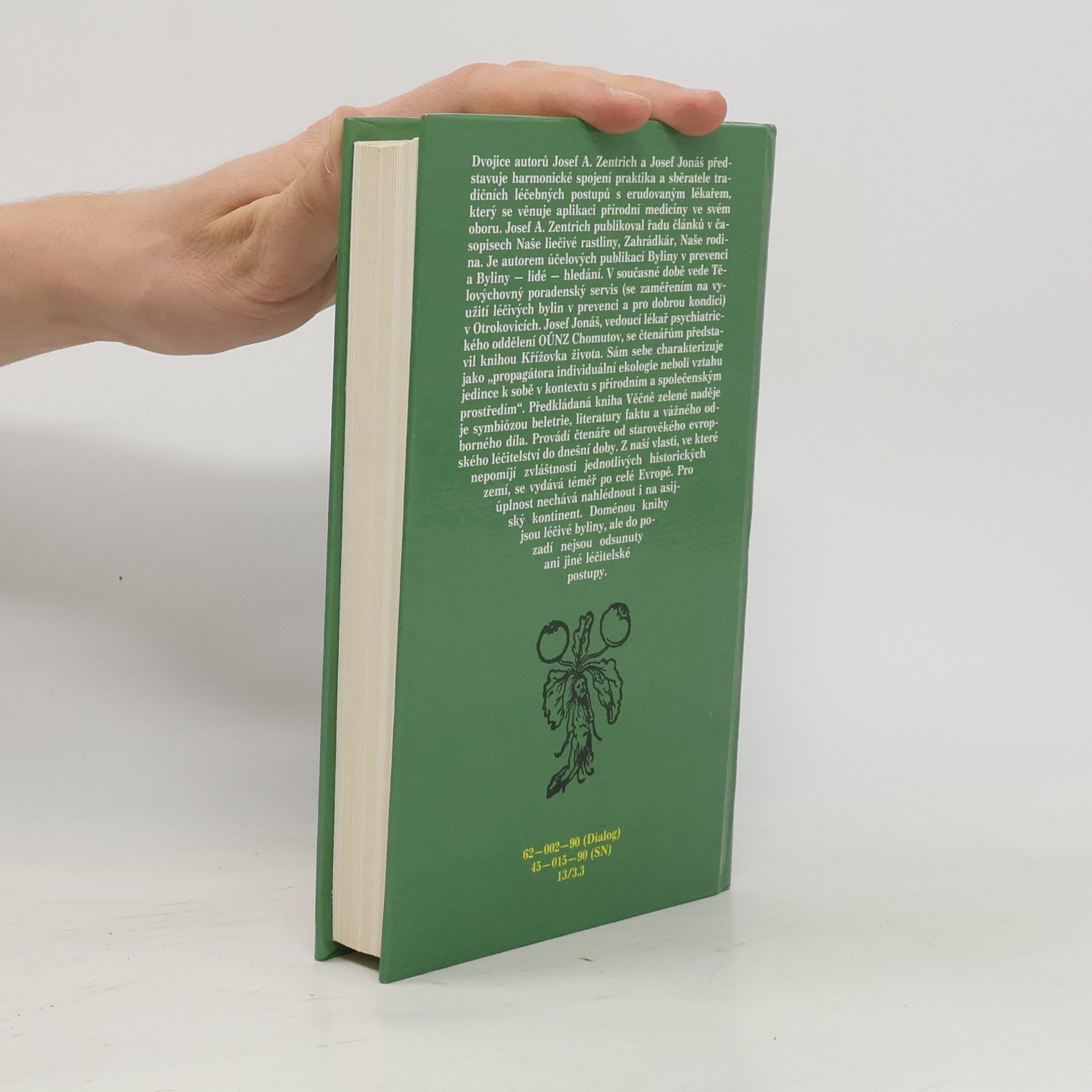 Publikace seznamuje s vývojem lidového přírodního léčitelství, s jeho způsoby, prostředky a recepty. Dotisk v r. 1990 (brož.) Dvojice autorů Josef A. Zentrich a Josef Jonáš představuje harmonické spojení praktika a sběratele tradičních léčebných postupů s erudovaným lékařem, který se věnuje aplikaci přírodní medicíny ve svém oboru. Josef A. Zentrich publikoval řadu článků v časopisech Naše liečivé rastliny, Zahrádkár, Naše rodina. Je autorem účelových publikací Byliny v prevenci a Byliny - lidé - hledání. V současné době vede Tělovýchovný poradenský servis (se zaměřením na využití léčivých bylin v prevenci a pro dobrou kondici) v Otrokovicích. Josef Jonáš, vedoucí lékař psychiatrického oddělení OÚNZ Chomutov, se čtenářům představil knihou Křížovka života. Sám sebe charakterizuje jako "progragátora individuální ekologie neboli vztahu jedince k sobě v kontextu s přírodním a společenským prostředím". Předkládaná kniha Věčně zelené naděje je symbiózou beletrie, literatury faktu a vážného odborného díla. Provádí čtenáře od starověkého evropského léčitelství do dnešní doby. Z naší vlasti, ve které nepomíjí zvláštnosti jednotlivých historických zemí, se vydává téměř po celé Evropě. pro úplnost nechává nahlédnout i a asijský kontinent. Doménou knihy jsou léčivé byliny, ale do pozadí nejsou odsunuty ani jiné léčitelské postupy.