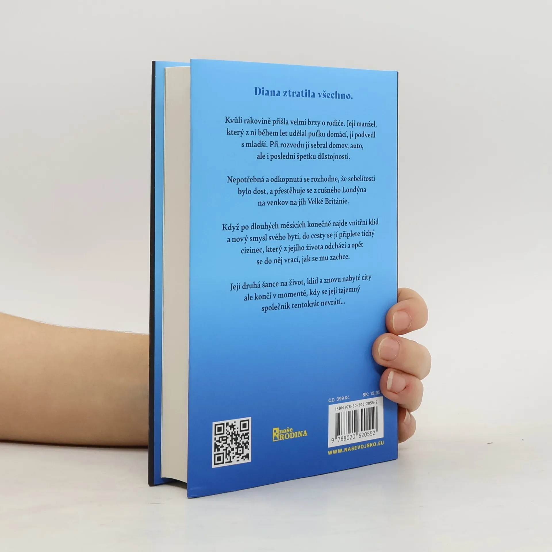 Diana ztratila všechno. Kvůli rakovině přišla velmi brzy o rodiče. Její manžel, který z ní lety udělal ženku domácí, ji podvedl s mladší. Při rozvodu jí vzal domů, auto i poslední kus důstojnosti. Nepotřebná a odhozená se rozhodne, že sebelítosti bylo dost a přestěhuje se z rušného Londýna na venkov na jihu Velké Británie. Když konečně po dlouhých měsících najde v sobě klid a nový smysl života, do cesty se jí zamotá tichý cizinec, který z jejího života odchází a opět se vrací, jak se mu zachce. Její druhá šance na život, klid a nově nabyté city však končí v momentě, kdy se její tajemný společník tentokrát nevrátí, jak jí slíbil.