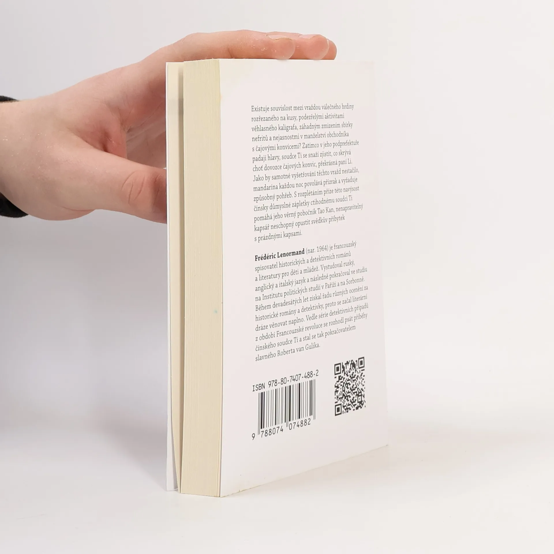 Existuje souvislost mezi vraždou válečného hrdiny rozřezaného na kusy, podezřelými aktivitami věhlasného kaligrafa, záhadným zmizením sbírky nefritů a nejasnostmi v manželství obchodníka s čajovými konvicemi? Zatímco v jeho podprefektuře padají hlavy, soudce Ti se snaží zjistit, co skrývá choť dovozce čajových konvic, překrásná paní Li. Jako by samotné vyšetřování těchto vražd nestačilo, mandarína každou noc povolává přízrak a vyžaduje způsobný pohřeb. S rozplétáním příze této navýsost čínsky důmyslné zápletky ctihodnému soudci Ti pomáhá jeho věrný pobočník Tao Kan, nenapravitelný kapsář neschopný opustit svědkův příbytek s prázdnými kapsami.