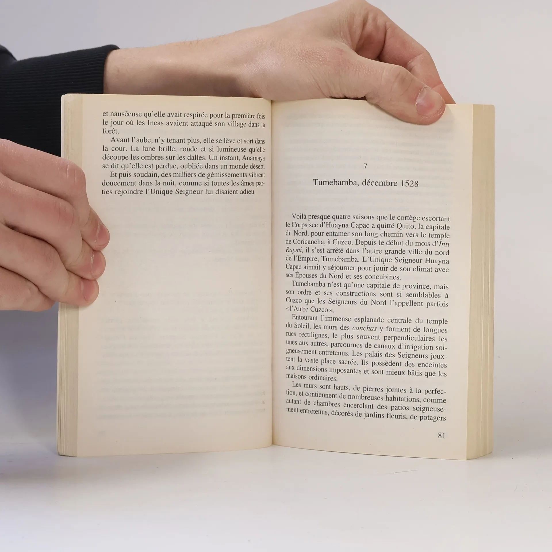 Quito, 1527. Seule rescapée du massacre de son village, Anamaya, est amenée au palais de Huayna Capac, le onzième Empereur inca, pour y être sacrifiée. Mais l'Empereur, qui se meurt doucement, s'attache à elle et lui confie les secrets de son royaume. Le lendemain, l'enfant ne se souvient de rien… Quelques années plus tard, Anamaya est devenue la confidente du nouvel Empereur, Atahuallpa, qui doit faire front à une révolte et au débarquement d'un petit groupe d'étrangers barbus. Il s'agit de conquistadores venus d'Espagne, envoyés par Charles Quint. A leur tête, le Capitan Pizarro entouré de ses frères et d'un jeune noble sorti des geôles de l'Inquisition, Gabriel. Anamaya espère toujours retrouver la mémoire pour aider son Empereur à rétablir la paix, Gabriel pensait juste oublier son passé en se laissant entraîner dans une belle aventure, leur rencontre improbable saura-t-elle changer le terrible destin d'un peuple souverain qui ne voit pas poindre sa chute ?