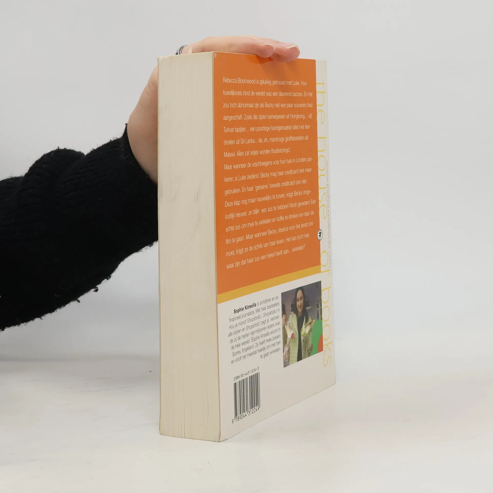 Rebecca Bloomwood is gelukkig getrouwd met Luke. Hun huwelijksreis rond de wereld was een daverend succes. En het zou toch abnormaal zijn als Becky niet een paar souvenirs had aangeschaft. Zoals die zijden kamerjassen uit Hong Kong... vijf Turkse tapijten... een prachtige handgemaakte tafel met tien stoelen uit Sri Lanka... de, eh, manshoge giraffebeelden uit Malawi. Alles zal netjes worden thuisbezorgd. Maar wanneer de vrachtwagens voor hun huis in Londen parekren, is Luke ziedend. Becky mag haar creditcard niet meer gebruiken. En haar 'geheime' tweede creditcard ook niet. Deze klap nog maar nauwelijks te boven, krijgt Becky ongelooflijk nieuws: ze blijkt een zus te hebben! Nooit geweten! Een echte zus om mee te winkelen en koffie te drinken en naar de film te gaan. Maar wanneer Becky Jessica voor het eerst ontmoet, krijgt ze de schrik van haar leven. Het kan toch niet waar zijn dat haar zus een hekel heeft aan... winkelen? Sophie Kinsella is schrijfster en ex-financieel journaliste. Met haar bestsellers Hou je mond!, Shopaholic!, Shopaholic! in alle staten en Shopaholic! zegt ja, veroverde zij de harten van miljoenen lezers over de hele wereld. Kinsella woont in Surrey, Engeland. Ze heeft twee zussen en vindt het meestal heerlijk om met hen te gaan winkelen.