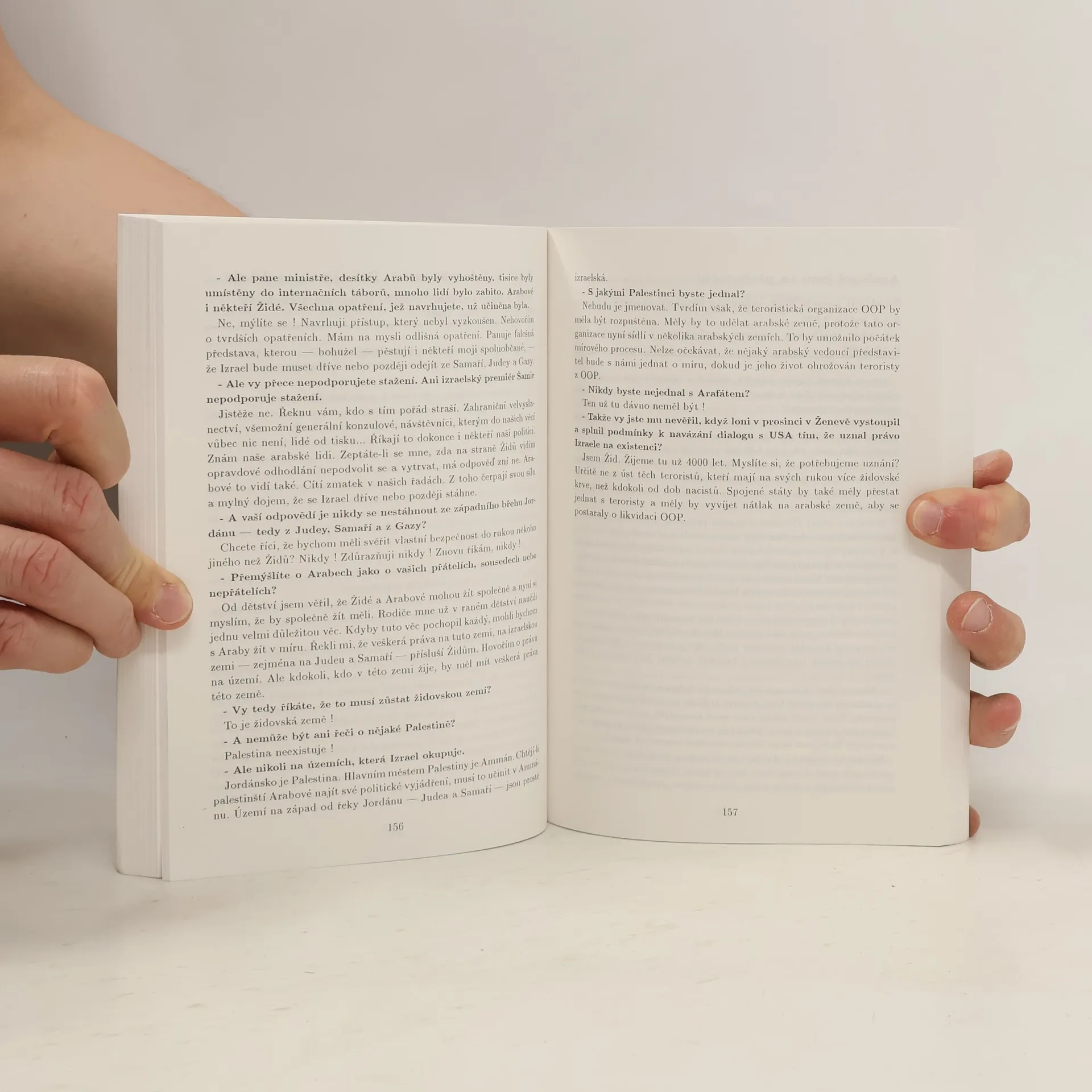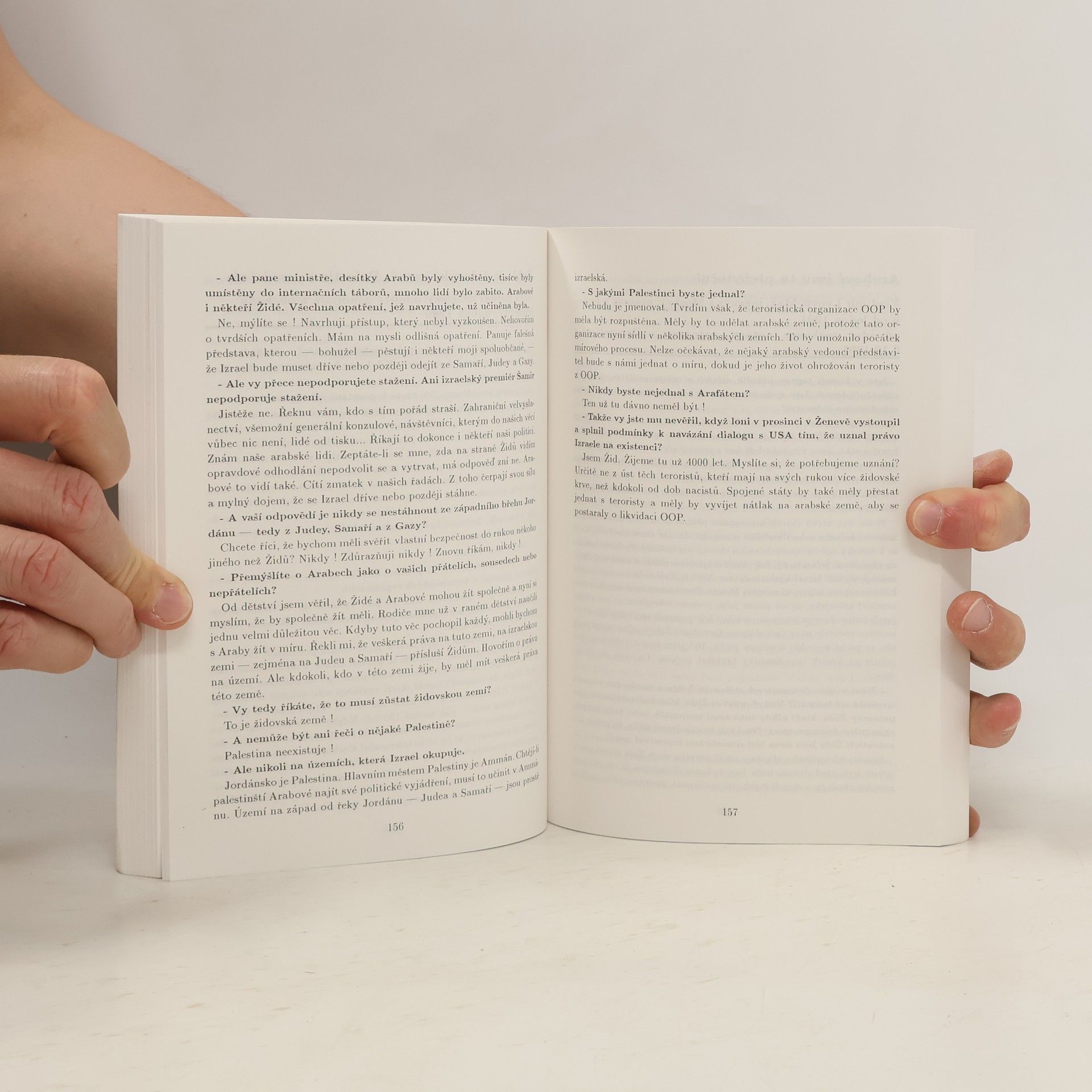 Kniha arabisty Miloše Mendela se věnuje konfliktu na území Palestiny, jehož hlavními aktéry jsou Židé a Arabové. V první části autor předkládá stručné novodobé dějiny regionu počínaje židovským osídlováním Palestiny a sionistickým hnutím inspirovaným myšlenkami Theodora Herzla, přes konflikty vzniklé soužitím Palestinců a Židů až po poslední vývoj do začátku 90. let 20. století. Hlavní část knihy je věnována tematicky členěným kapitolám rozhovorů s představiteli obou stran konfliktu, od představitelů izraelského establishmentu, "jestřábů" a palestinských vůdců, přes umírněné hlasy, intelektuály a "holubice" z obou etnik až po hlasy "do vlastních řad" a názory lidí z židovské diaspory mimo Izrael. Kniha si dle autora nečiní nárok být zcela objektivní, spíše se snaží "navodit čtenáři co nejplastičtější představu o způsobu myšlení a argumentace soupeřících stran. Záměrně omezuje vlastní interpretaci konfliktu na minimum. Nechává raději hovořit rabíny, partyzány, politické vůdce, intelektuály a "teroristy" z obou stran barikády. Nechť čtenář sám posoudí, která strana má právo tvrdit, že je bez viny. Ať sám zváží, kdo má na Palestinu morální a právní nárok a zda vůbec mají Židé a Palestinci před sebou jiné řešení než naučit se žít vedle sebe." Kniha obsahuje celkem 47 rozhovorů. Závěr tvoří podrobná chronologie dramatu v rozmezí let 1878-1992 a 32 stran dokumentárních černobílých fotografií.