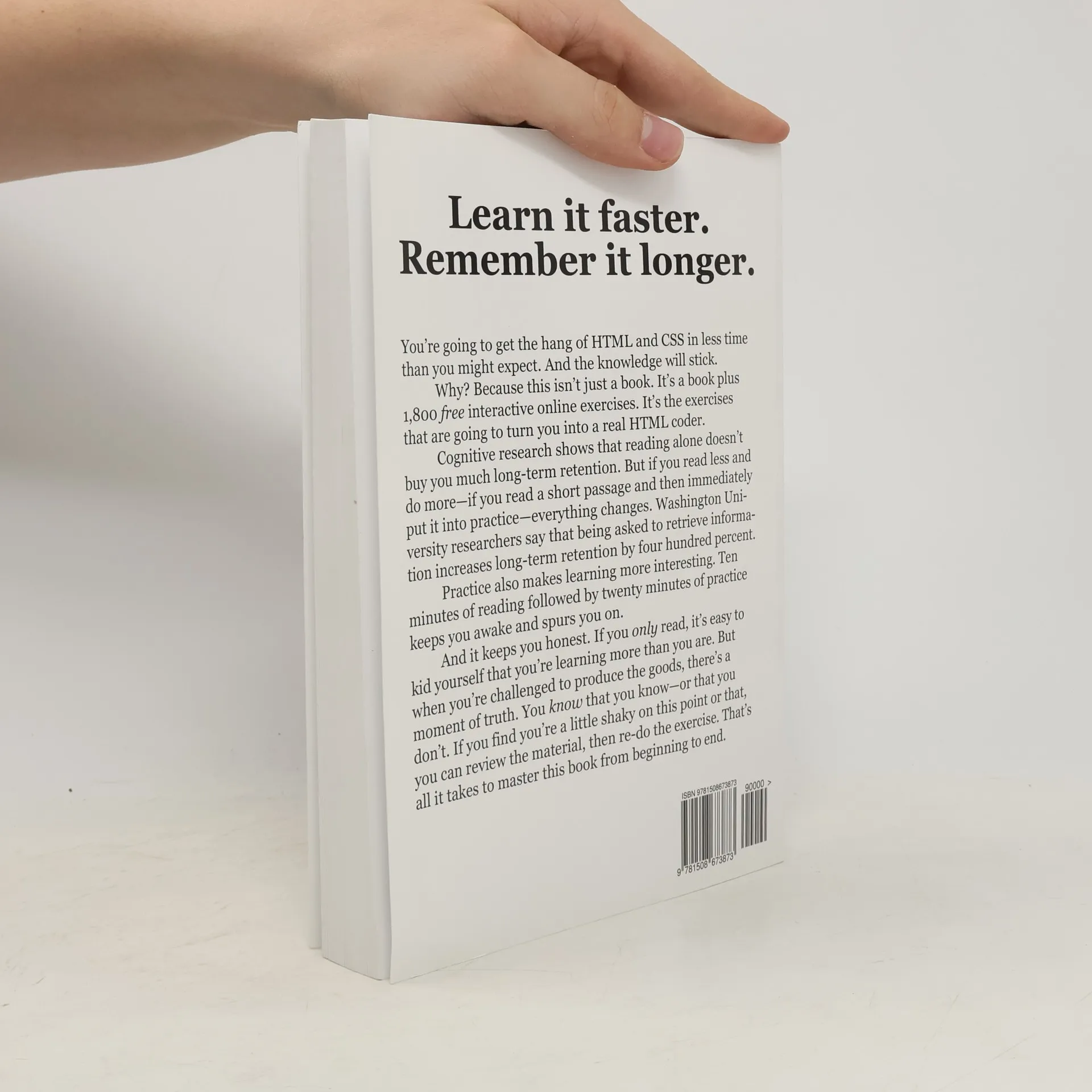 The ultimate learn-by-doing approach. Short chapters are paired with free interactive online exercises to teach the fundamentals of HTML and CSS. Written for beginners, useful for experienced developers who want to sharpen their skills. Prepares the reader to code a website of medium complexity. The learner spends two to three times as long practicing as he does reading. Based on cognitive research showing that retention increases 400 percent when learners are challenged to retrieve the information they just read. Explanations are in plain, nontechnical English that people of all backgrounds can readily understand. With ample coding examples and illustrations.