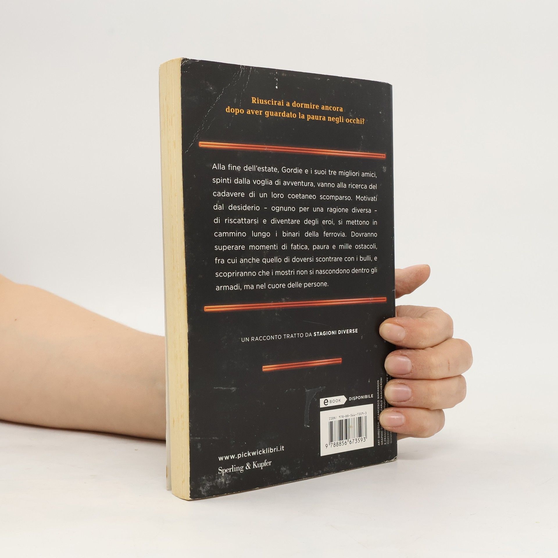 Alla fine dell'estate, Gordie e i suoi tre migliori amici, spinti dalla voglia di avventura, vanno alla ricerca del cadavere di un loro coetaneo scomparso. Motivati dal desiderio - ognuno per una ragione diversa - di riscattarsi e diventare degli eroi, si mettono in cammino lungo i binari della ferrovia. Dovranno superare momenti di fatica, paura e mille ostacoli, fra cui anche quello di doversi scontrare con i bulli, e scopriranno che i mostri non si nascondono dentro gli armadi, ma nel cuore delle persone. Questo racconto è già comparso in traduzione italiana con il titolo "Il corpo (Stand by me)" nella raccolta "Stagioni diverse".