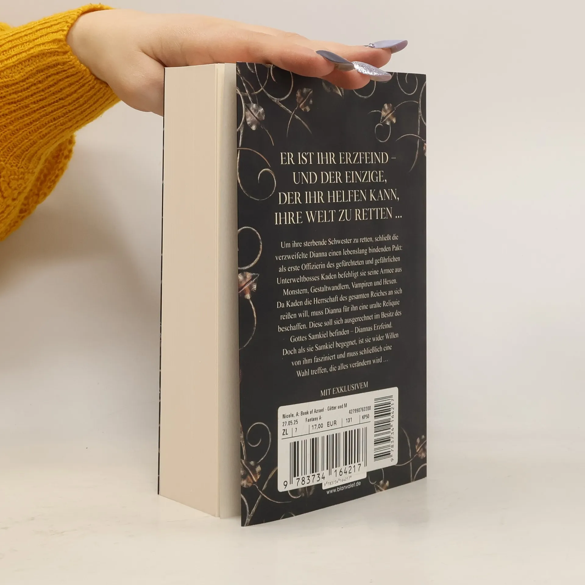 Er ist ihr Erzfeind – und der einzige, der ihr helfen kann, ihre Welt zu retten. Um ihre sterbende Schwester zu retten, schließt die verzweifelte Dianna einen lebenslang bindenden Pakt: als erste Offizierin des gefürchteten und gefährlichen Unterweltboss Kaden befehligt sie seine Armee aus grausamen Monstern, Gestaltwandlern, Vampiren und Hexen. Als Kaden die Herrschaft des gesamten Reiches an sich reißen will, muss Dianna für ihn eine uralte Reliquie beschaffen. Diese soll sich ausgerechnet im Besitz des Gottes Samkiel befinden, Diannas Erzfeind, der das Reich seit tausenden Jahren besetzt hält. Doch als sie Samkiel begegnet, muss sie eine Wahl treffen, die alles verändern wird … Die fesselnd-düstere, spicy Dark Fantasy mit Slow-Burn-Liebesgeschichte sowie den Tropes Enemies-to-Lovers und Forced Proximity endlich auf Deutsch!
